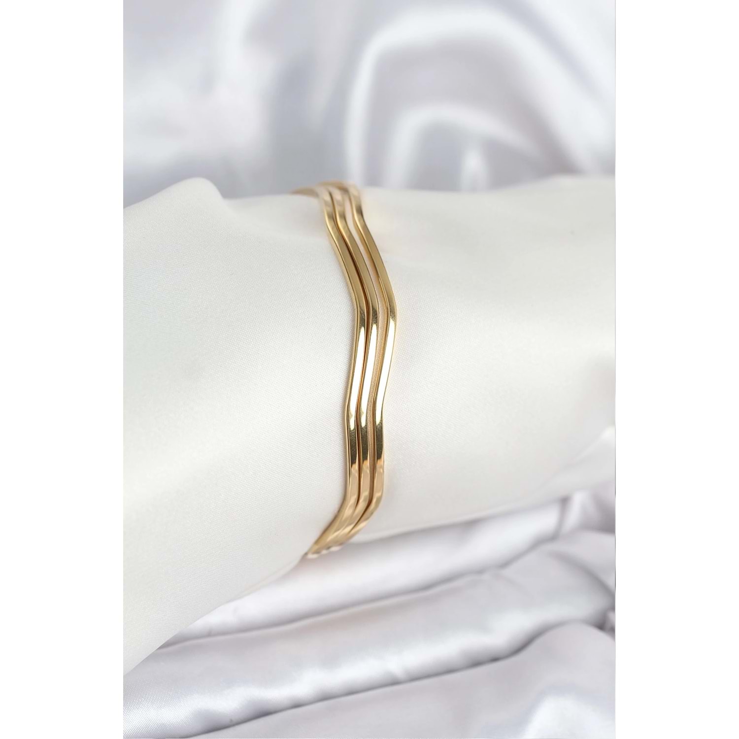 316L Çelik Gold Renk 65 mm Ajda Zikzak Model 3lü Kadın Bileklik