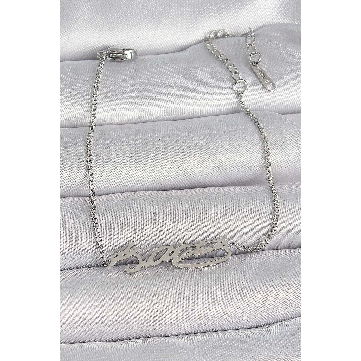 316L Çelik Gümüş Renk Atatürk İmza Model Kadın Bileklik