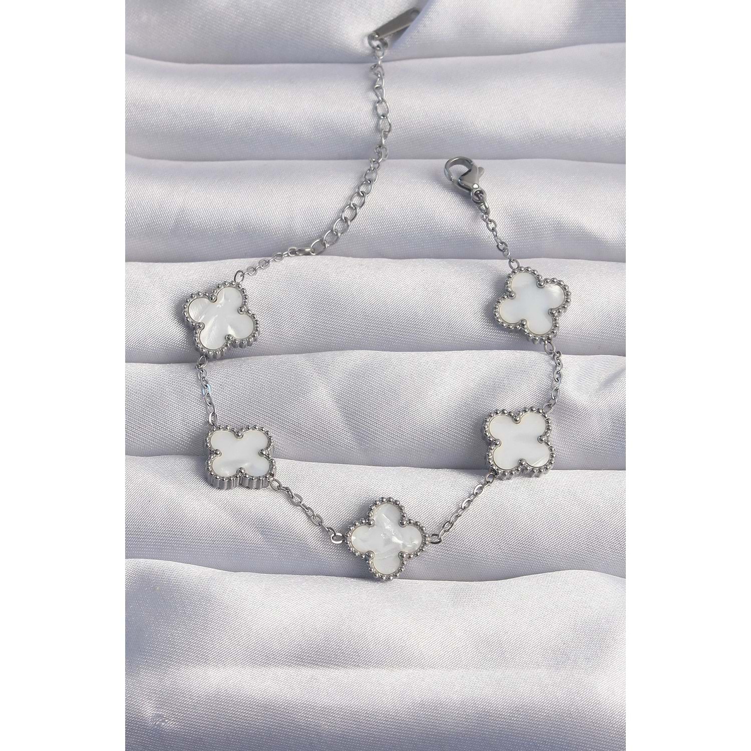 316L Çelik Gümüş Renk Beyaz Sedefli Yonca Bileklik