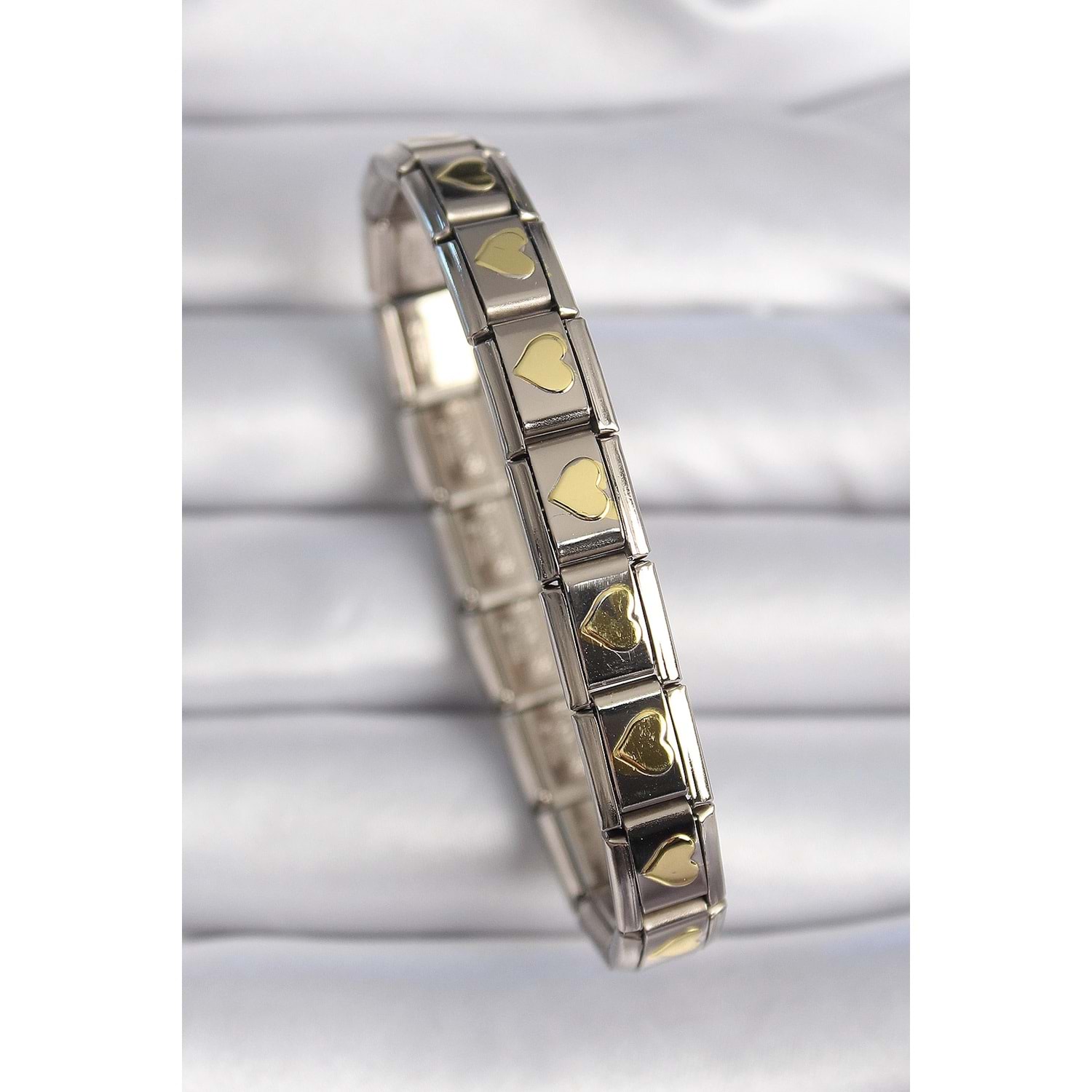 316L Çelik Gümüş Renk Gold Kalp İşleme Nomination Charm Bileklik