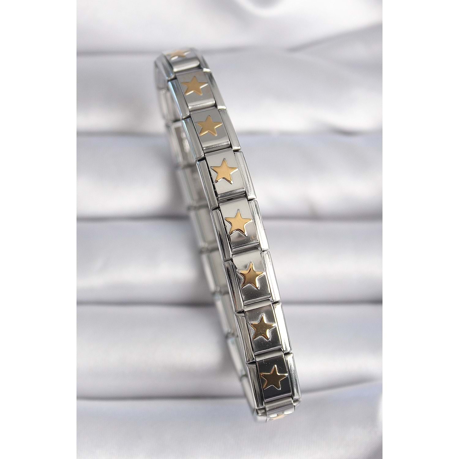 316L Çelik Gümüş Renk Gold Yıldız İşleme Nomination Charm Bileklik