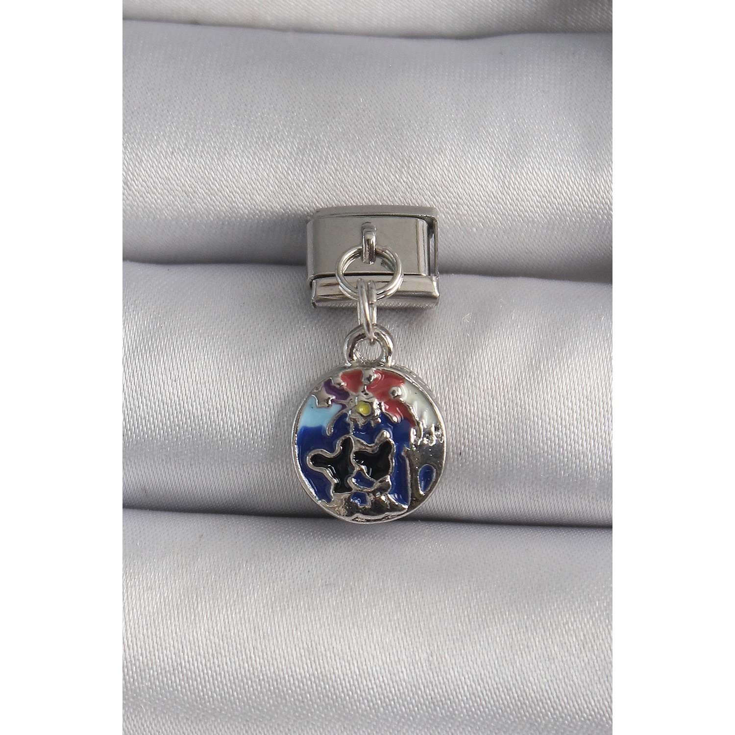 316L Çelik Gümüş Renk Sallantı Dünya Model Nomination Charm