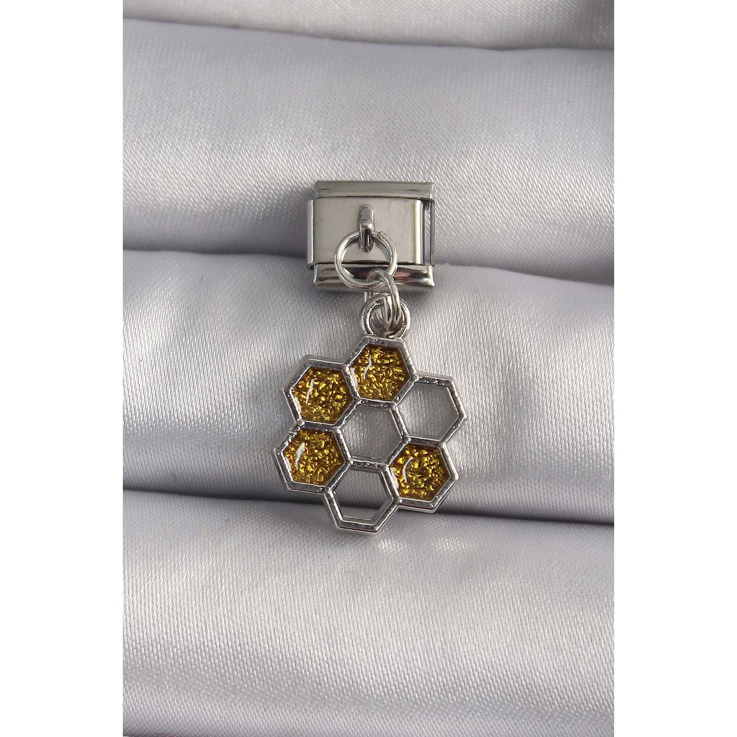 316L Çelik Gümüş Renk Sallantı Simli Bal Beteği Model Nomination Charm
