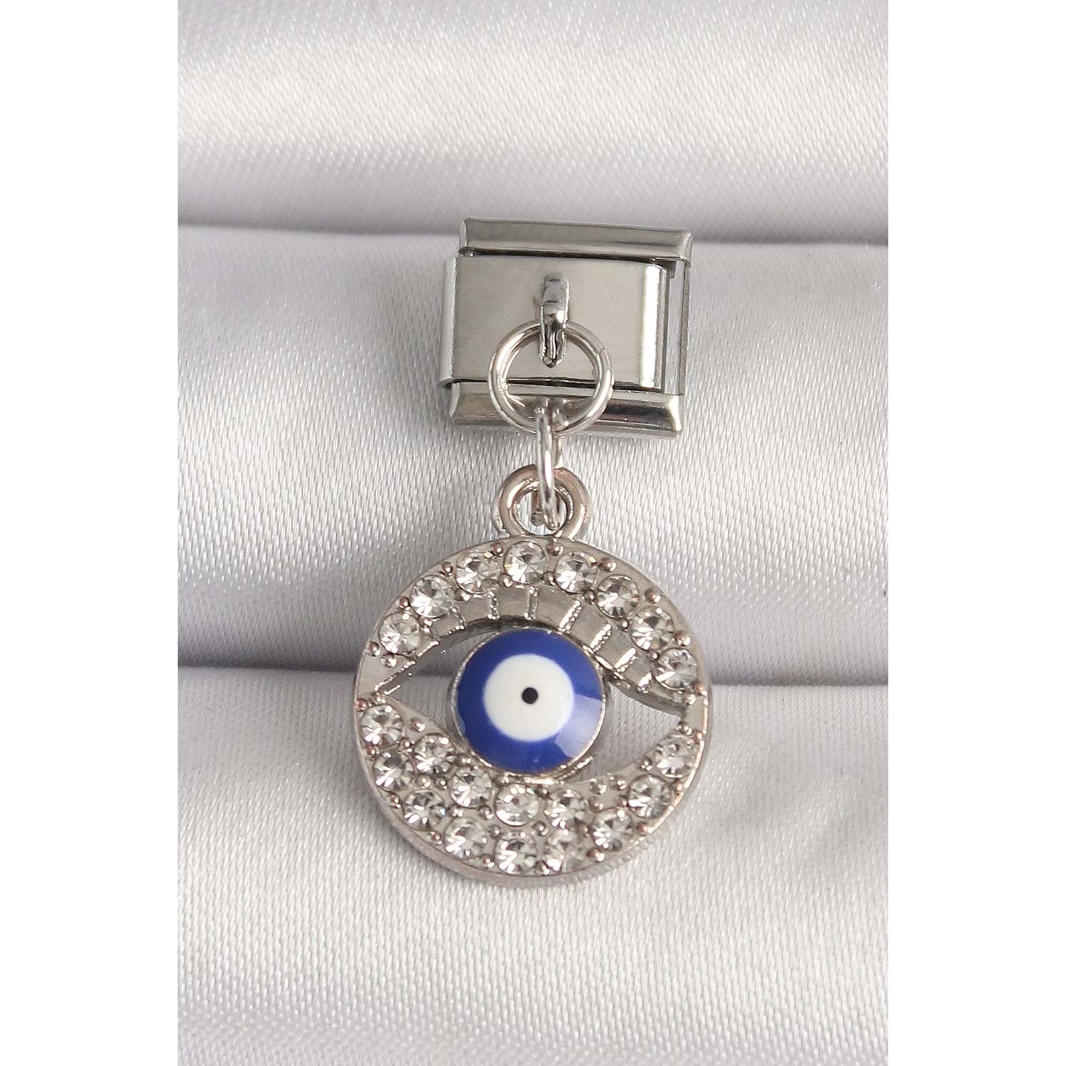 316L Çelik Gümüş Renk Zirkon Taşlı Göz Model Nazar Boncuk Detay Nomination Charm