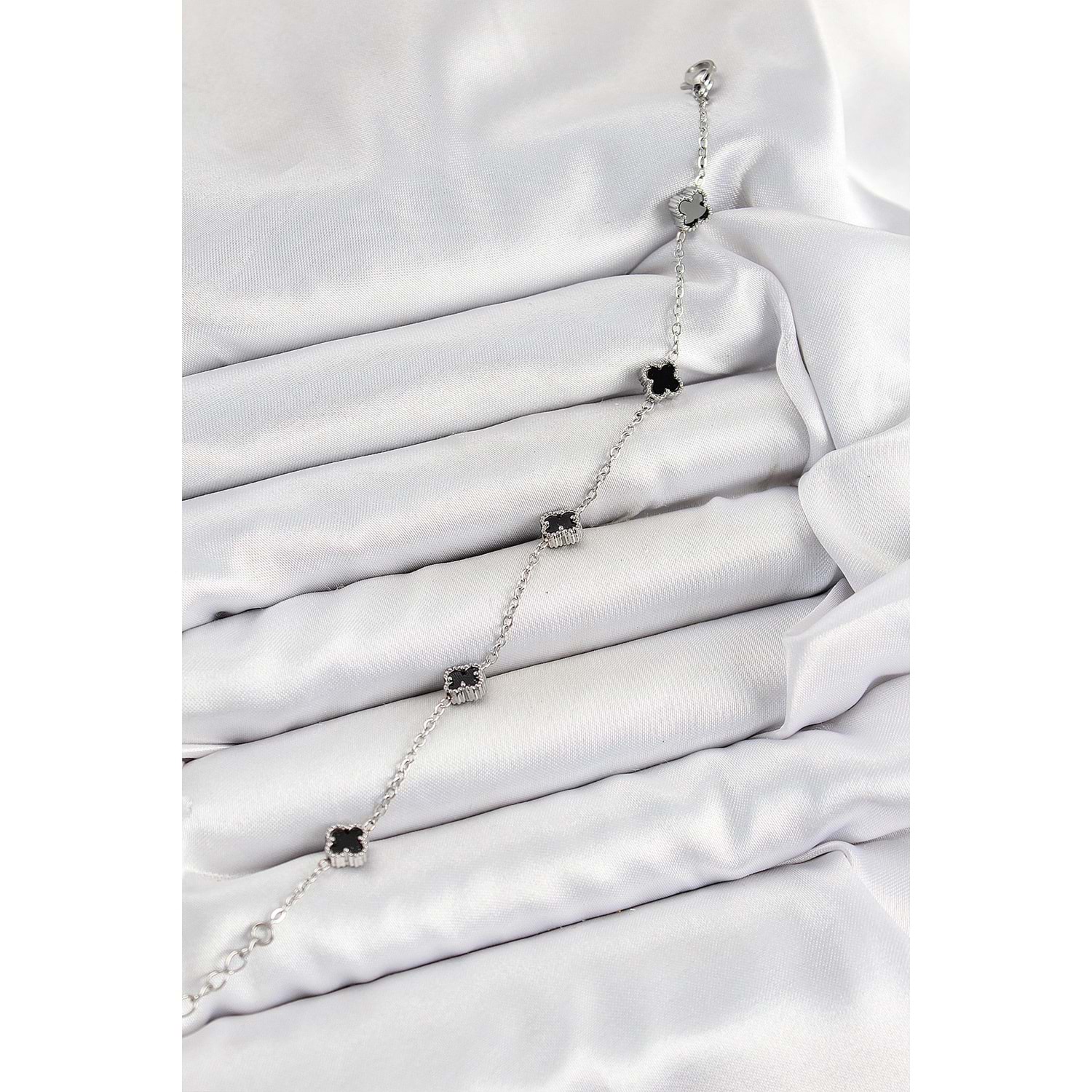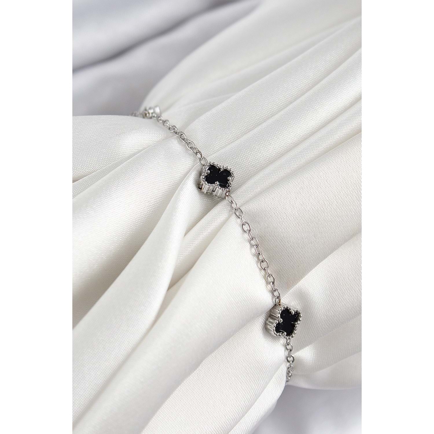 316L Çelik Siyah Sedef Yonca Model Gümüş Renk Kadın Bileklik