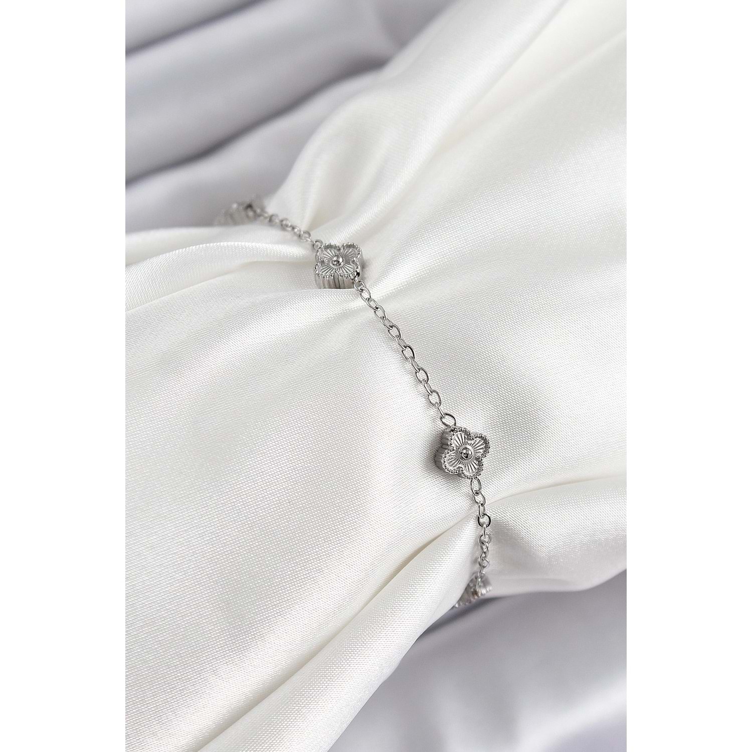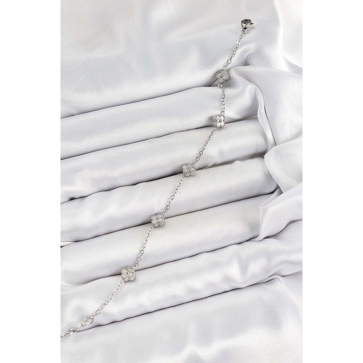 316L Çelik Yonca Model Gümüş Renk Kadın Bileklik