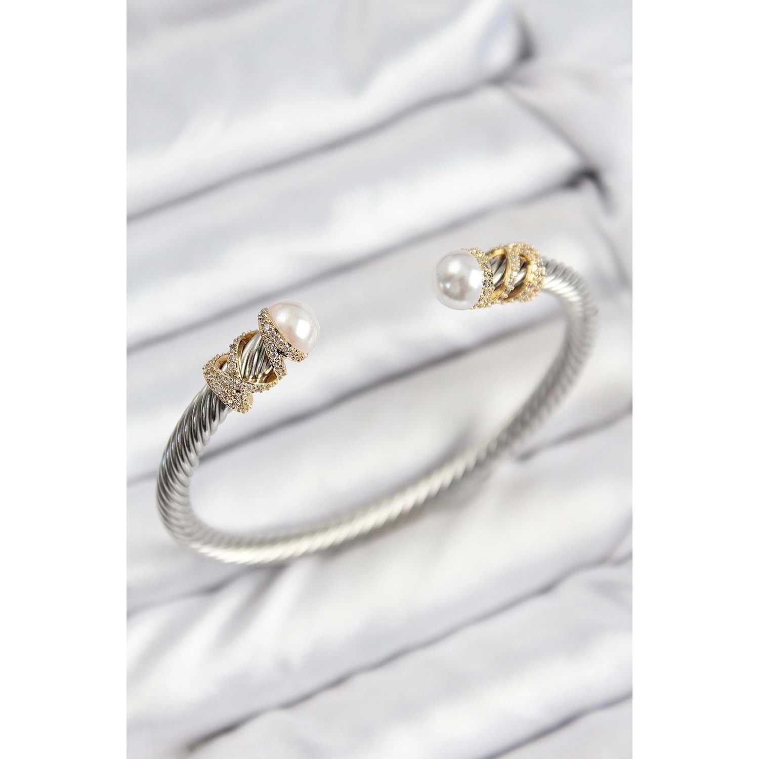 316L Çelik Zirkon Taşlı İnci Model Gold Ve Gümüş Renk Kadın Bileklik