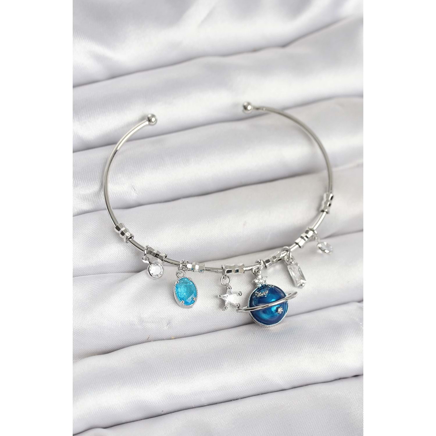 Gezegen Charmlı Gümüş Renk Pirinç Kadın Bileklik