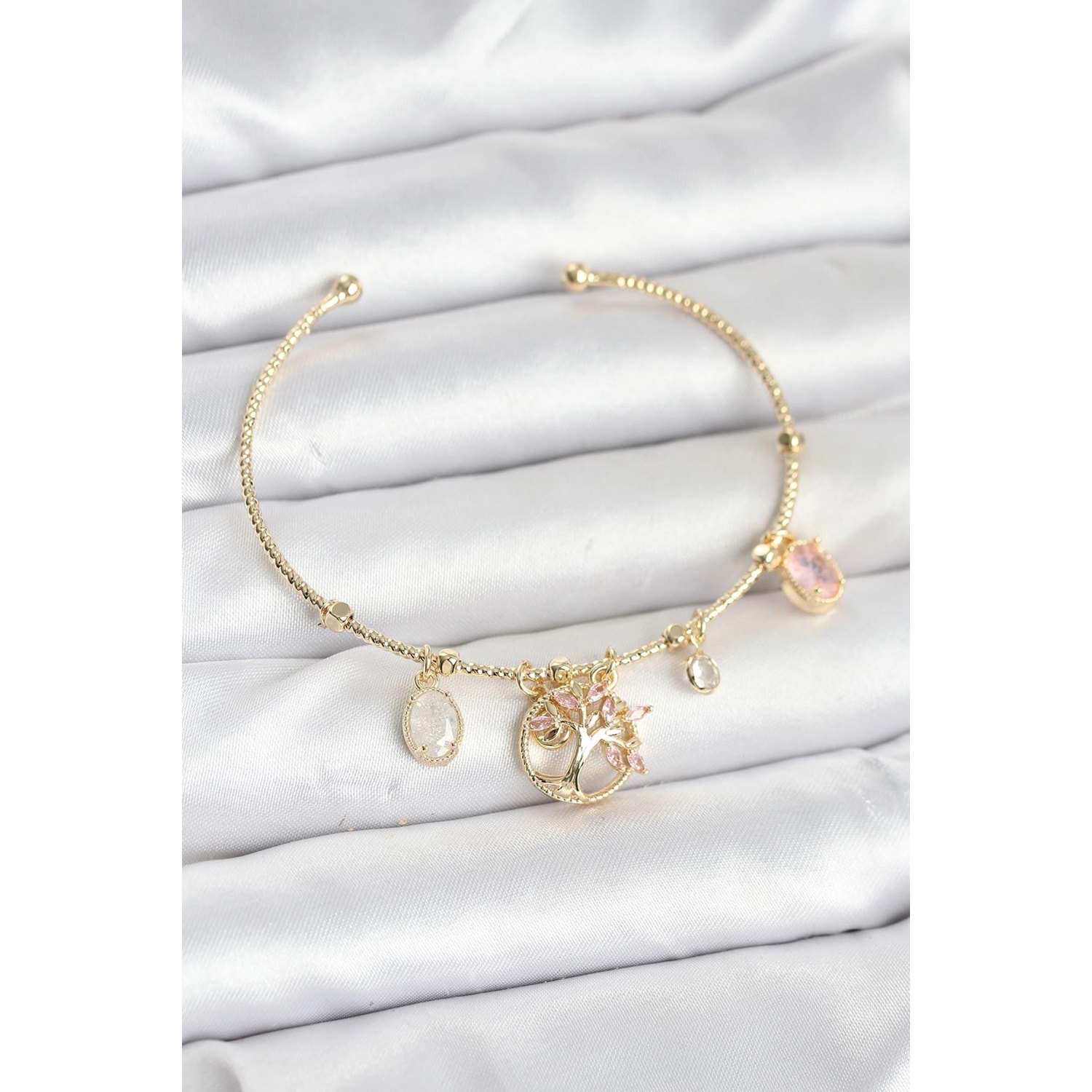 Hayat Ağacı Charmlı Gold Renk Pirinç Kadın Bileklik