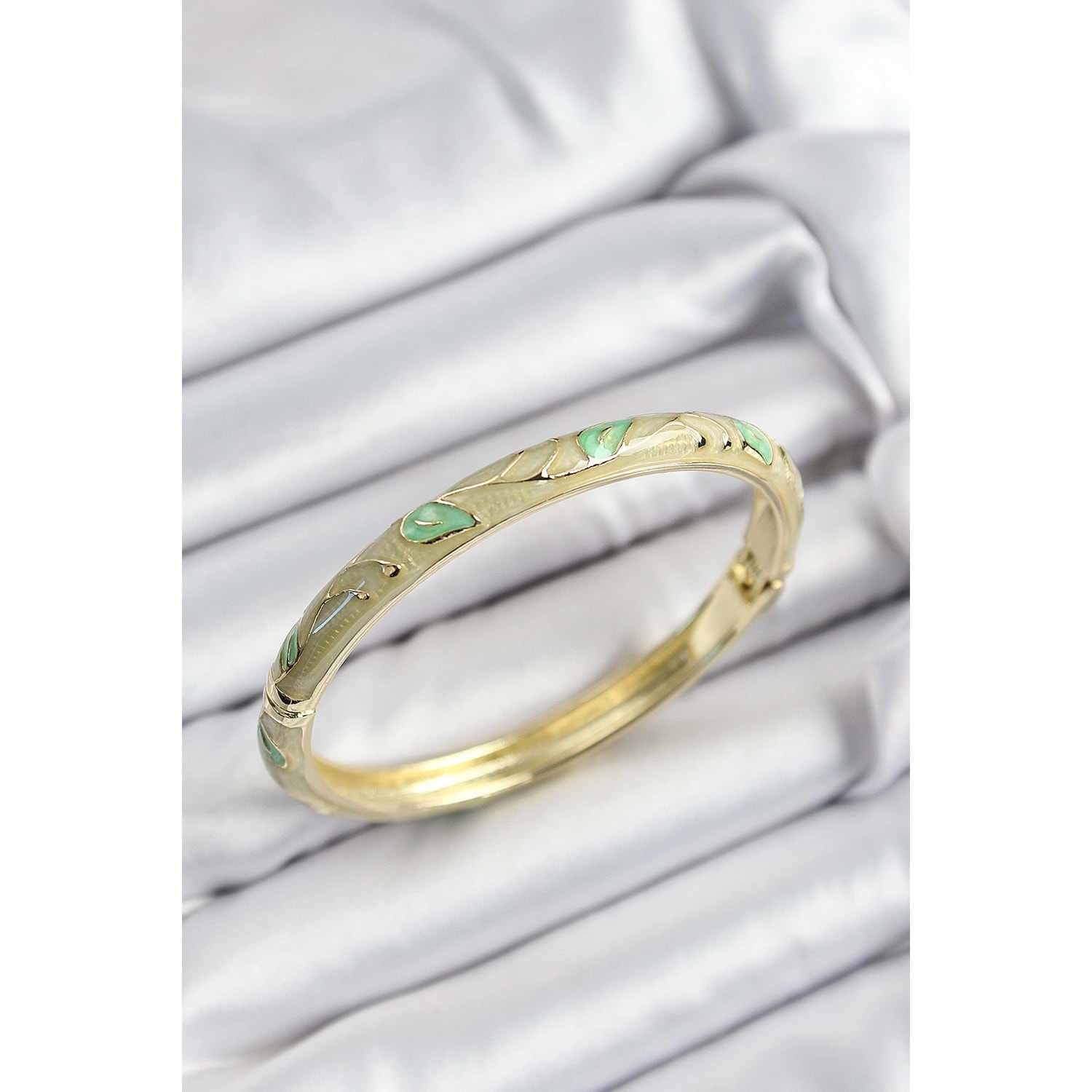 Mineli Pirinç Yeşil Yaprak Motifli Gold Renk Kadın Kelepçe