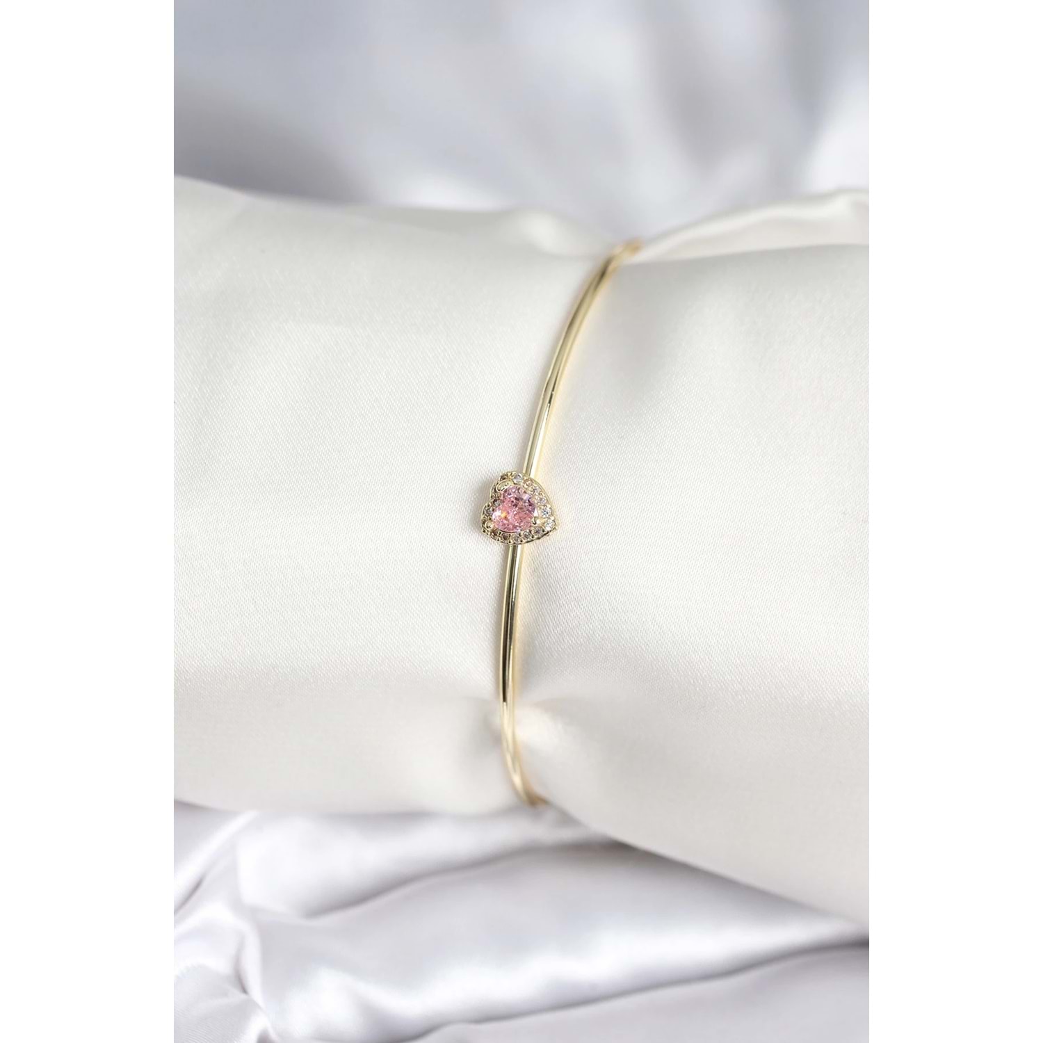 Pembe Zirkon Taşlı Kalp Model Gold Renk Kadın Bileklik