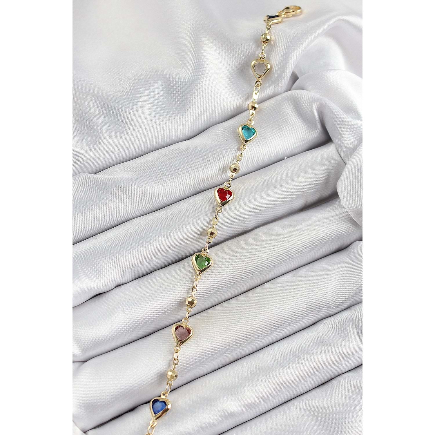 Pirinç Asorti Kalp Model Gold Renk Zirkon Taşlı Kadın Bileklik