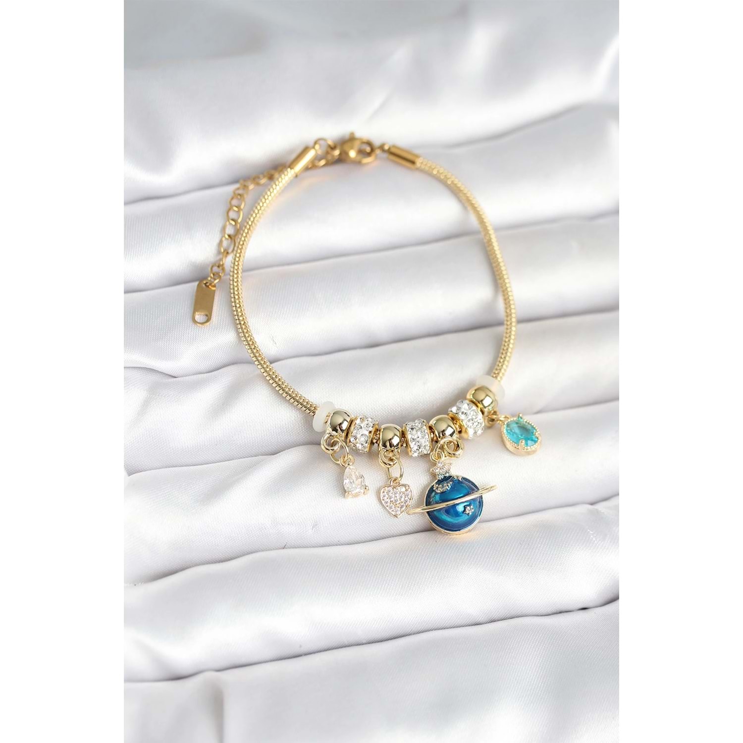 Pirinç Gold Renk Dünya Charmlı Kadın Bileklik