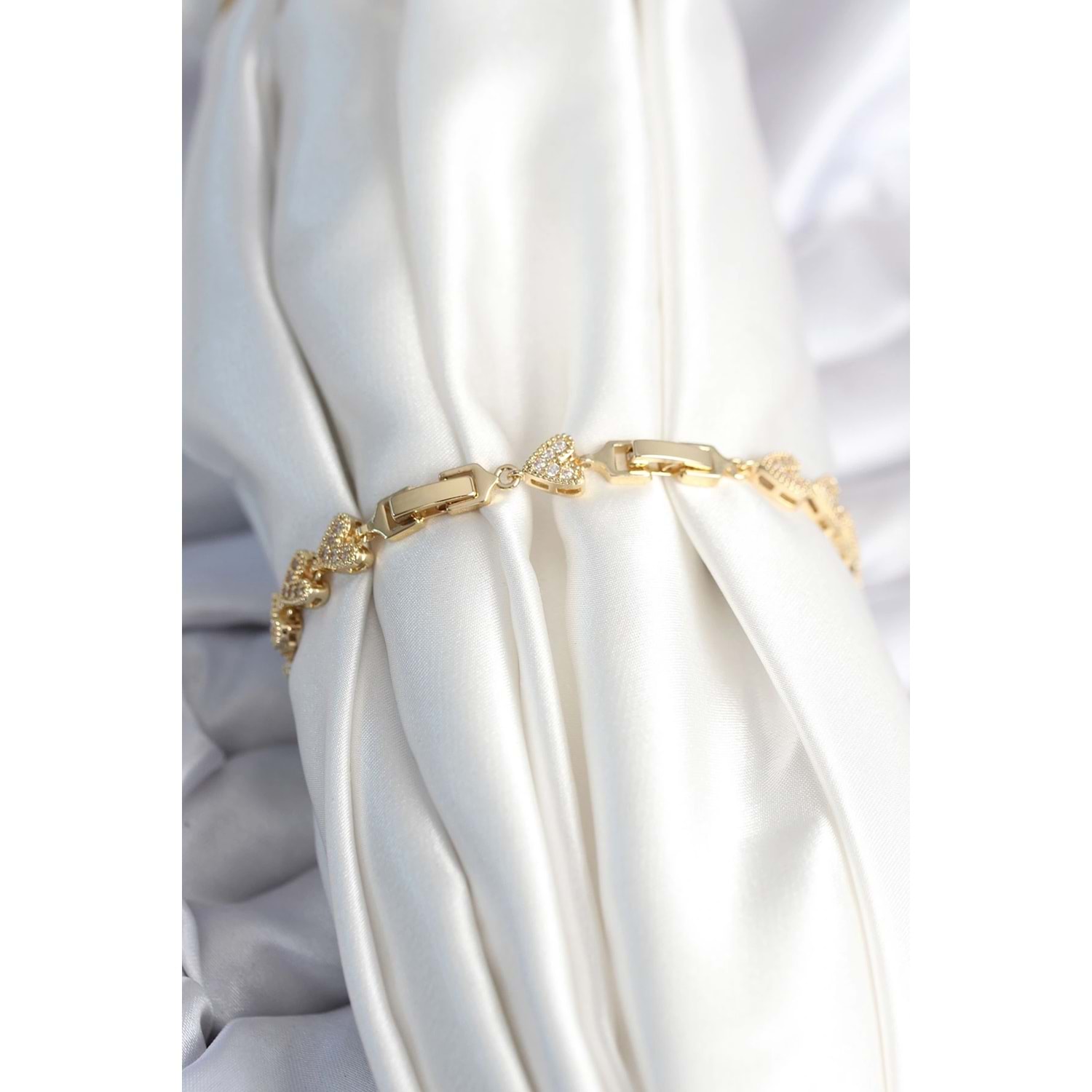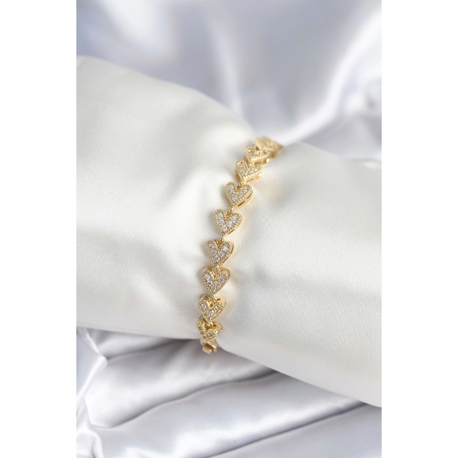 Pirinç Gold Renk Kalp Model Kadın Bileklik