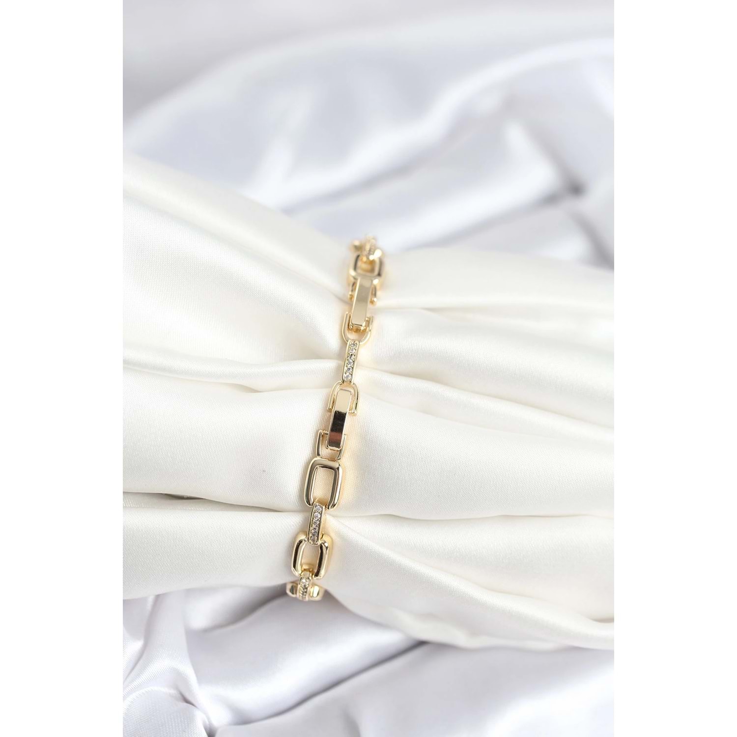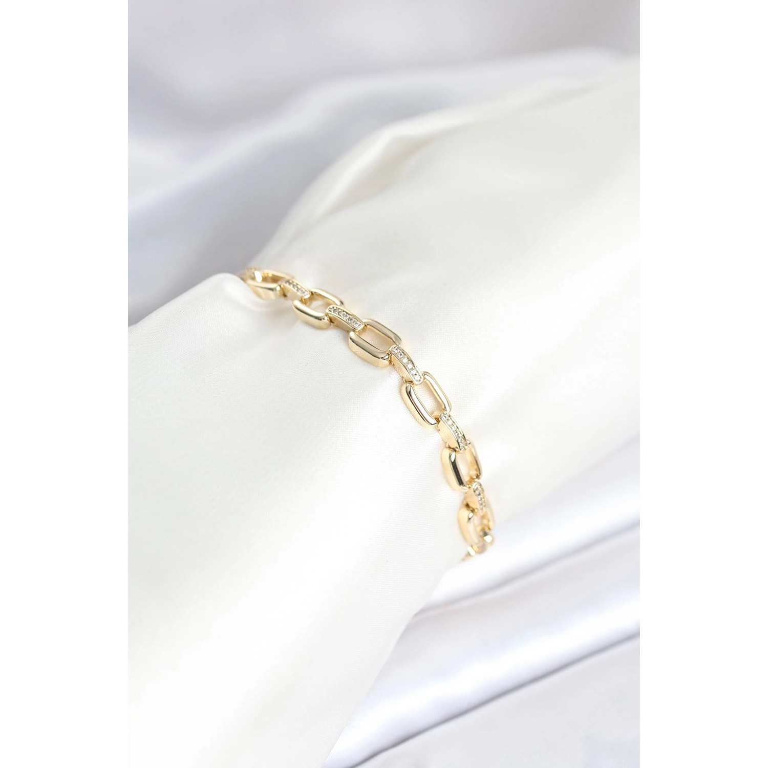 Pirinç Gold Renk Kare Zincir Model Zirkon Taşlı Kadın Bileklik