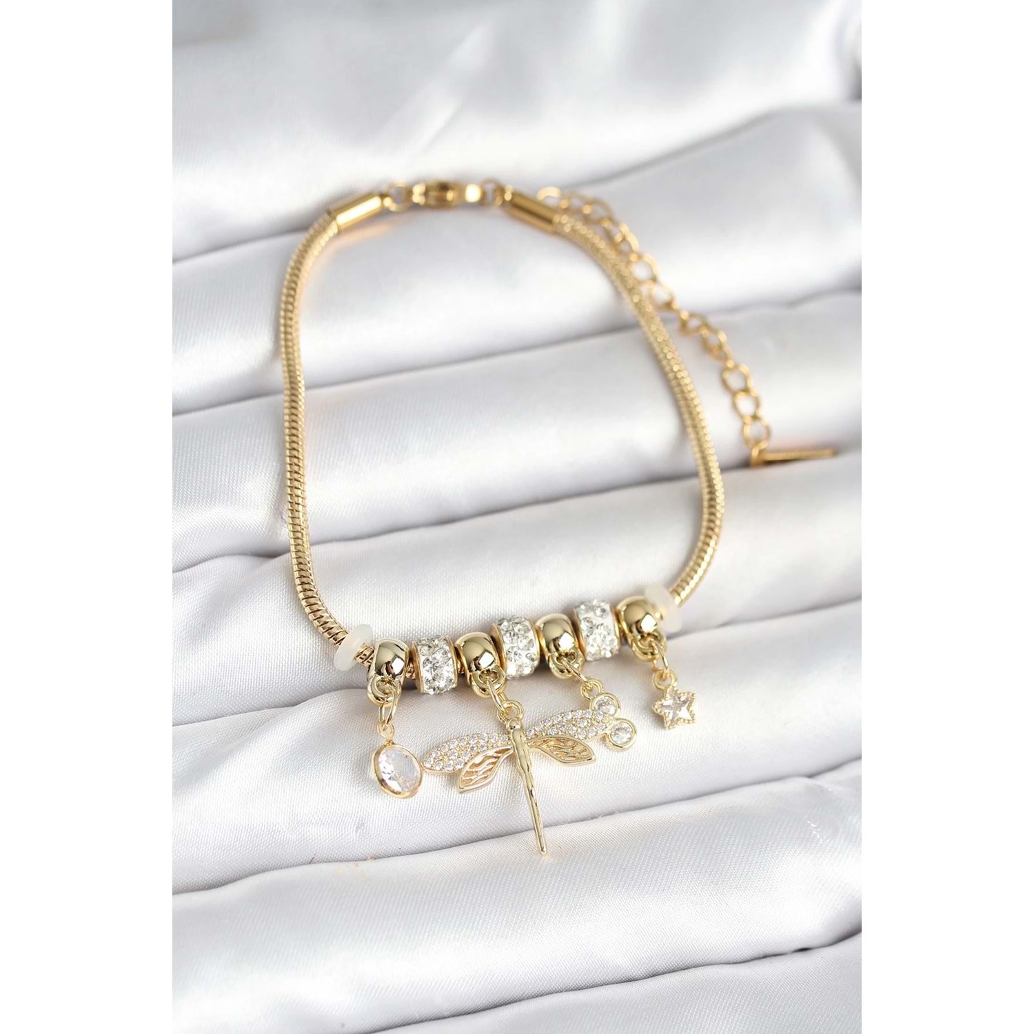 Pirinç Gold Renk Yusufçuk Charmlı Kadın Bileklik