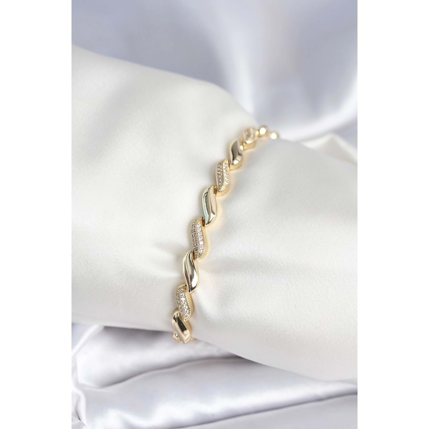 Pirinç Gold Renk Zirkon Taşlı Sarmal Model Kadın Bileklik