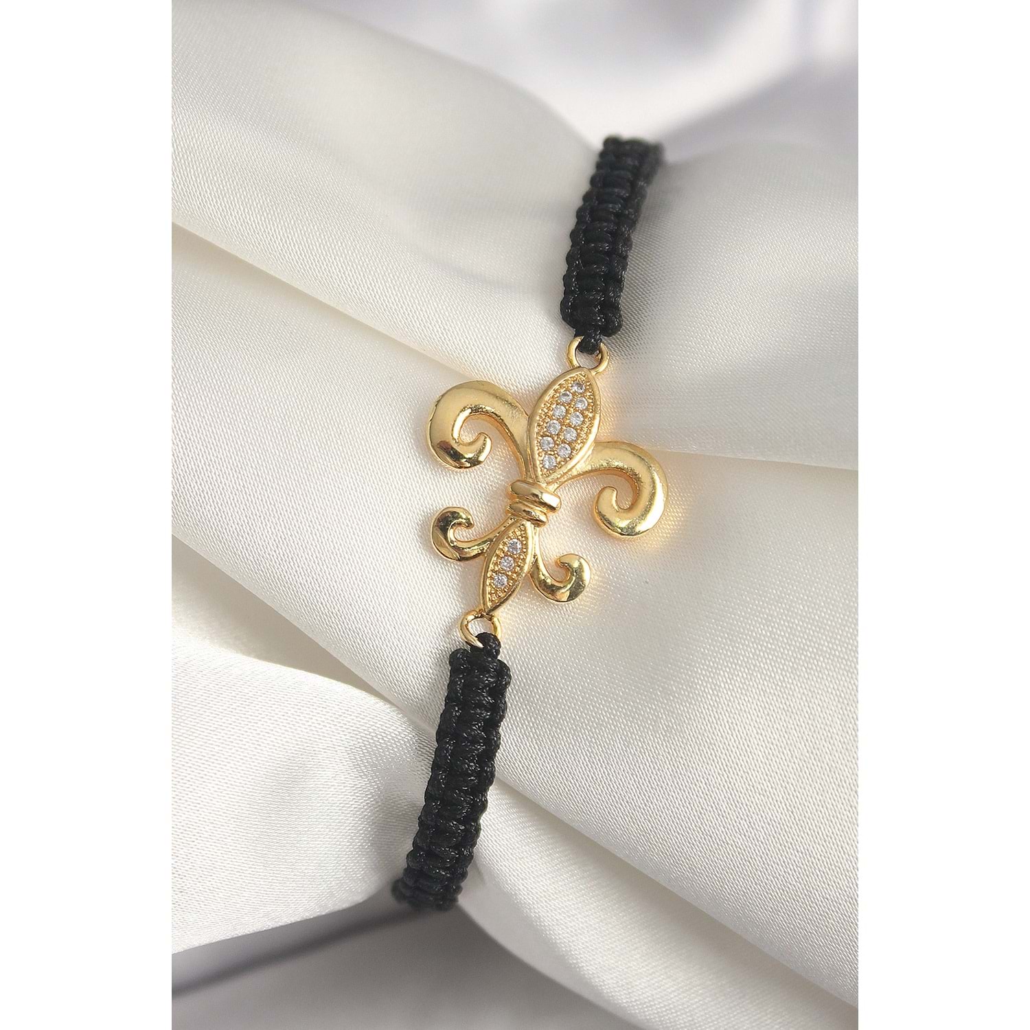 Pirinç Gold Renk Zirkon Taşlı Zambak Figür Asansörlü Makrome Model Kadın Bileklik