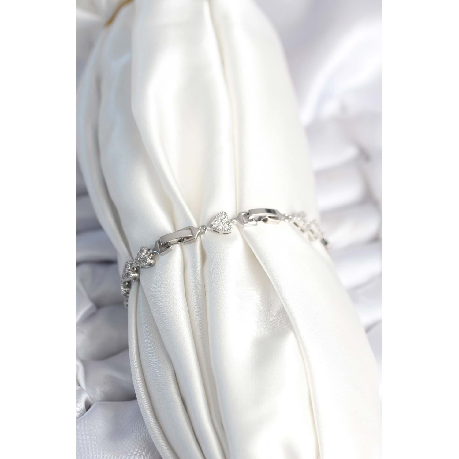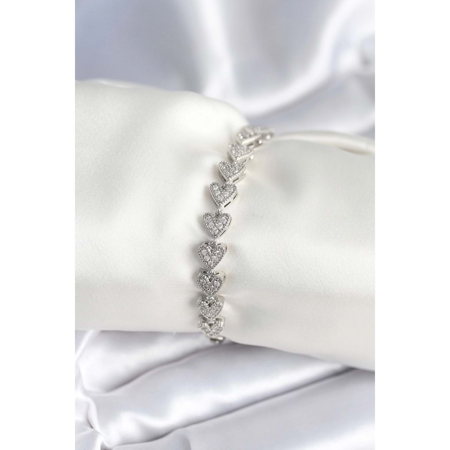 Pirinç Gümüş Renk Kalp Model Kadın Bileklik