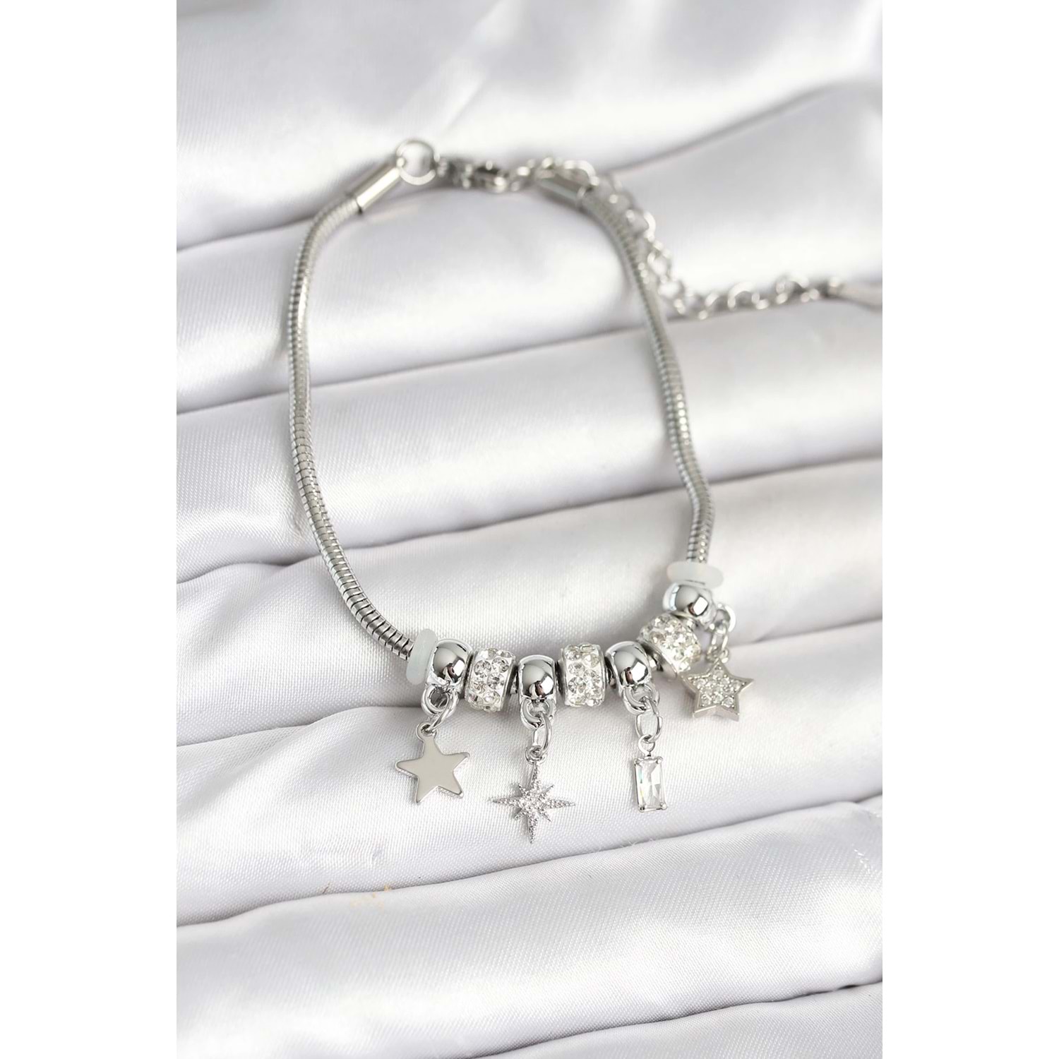 Pirinç Gümüş Renk Kutup Yıldızı Charmlı Kadın Bileklik