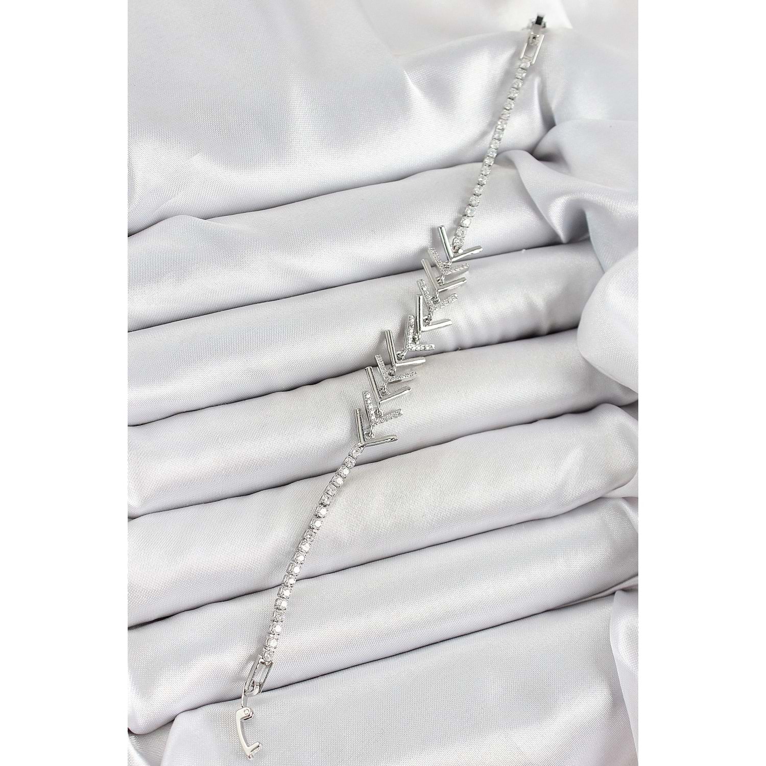 Pirinç Gümüş Renk Zirkon Taşlı Balık Sırtı Kadın Bileklik