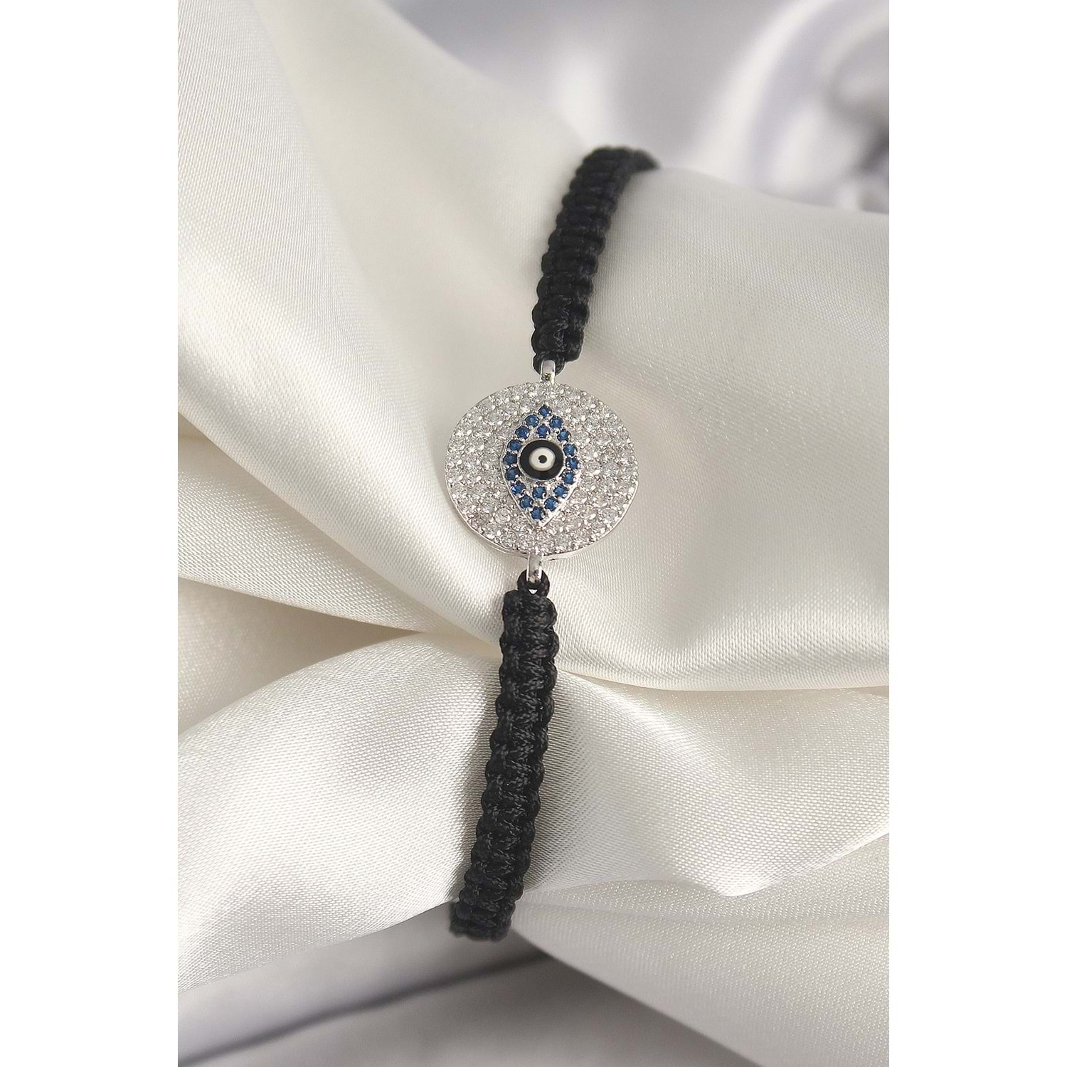 Pirinç Gümüş Renk Zirkon Taşlı Göz İşlemeli Figür Asansörlü Makrome Model Kadın Bileklik