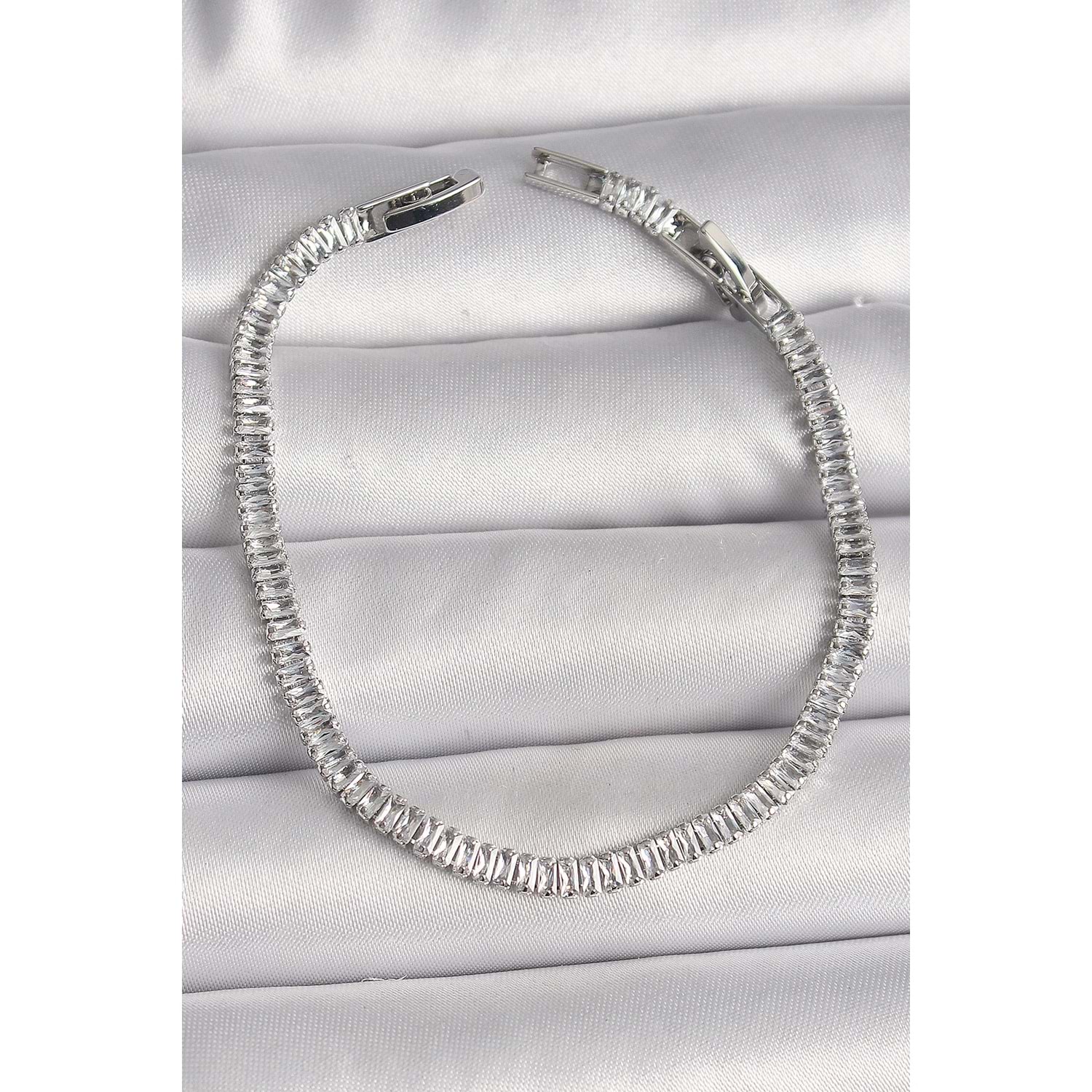 Pirinç Gümüş Renk Zirkon Taşlı Su Yolu Model Kadın Bileklik