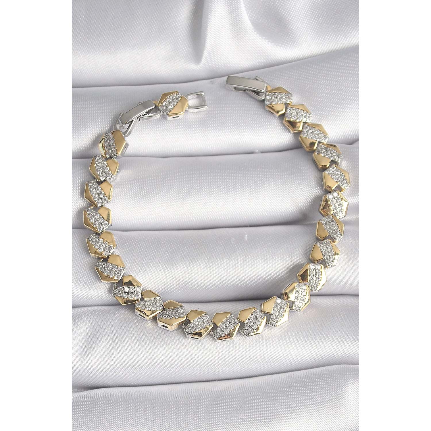 Pirinç Mix Renk Kalp Model Zirkon Taşlı VIP Seri Kadın Bileklik