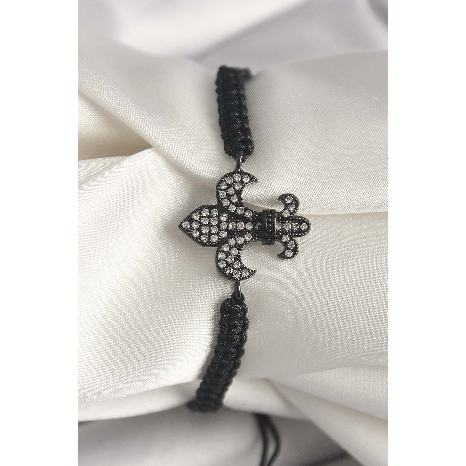 Pirinç Siyah Renk Zirkon Taşlı Zambak Figür Asansörlü Makrome Model Kadın Bileklik