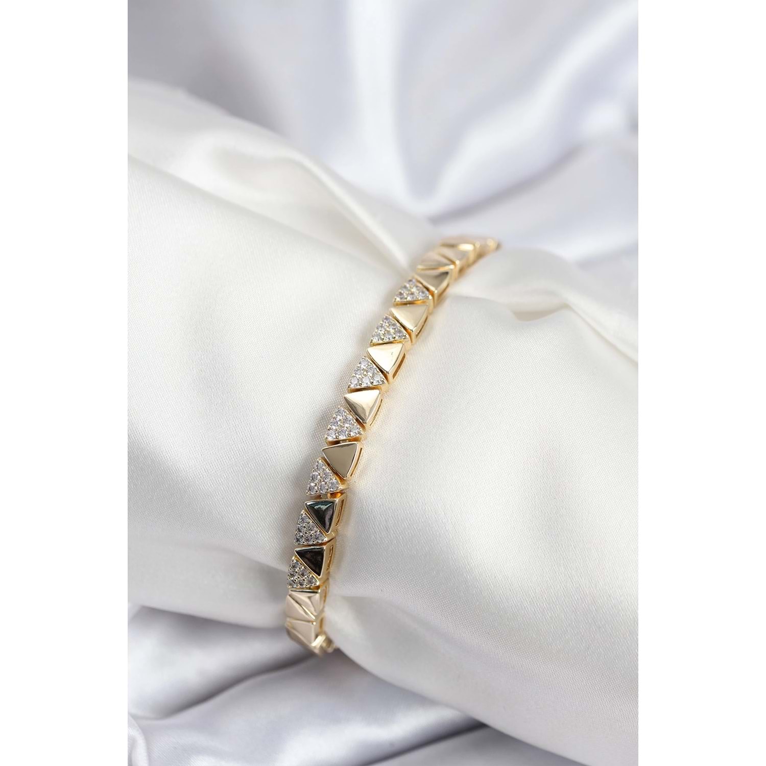 Pirinç VIP Seri Gold Renk Sıralı Üçgen Model Kadın Bileklik