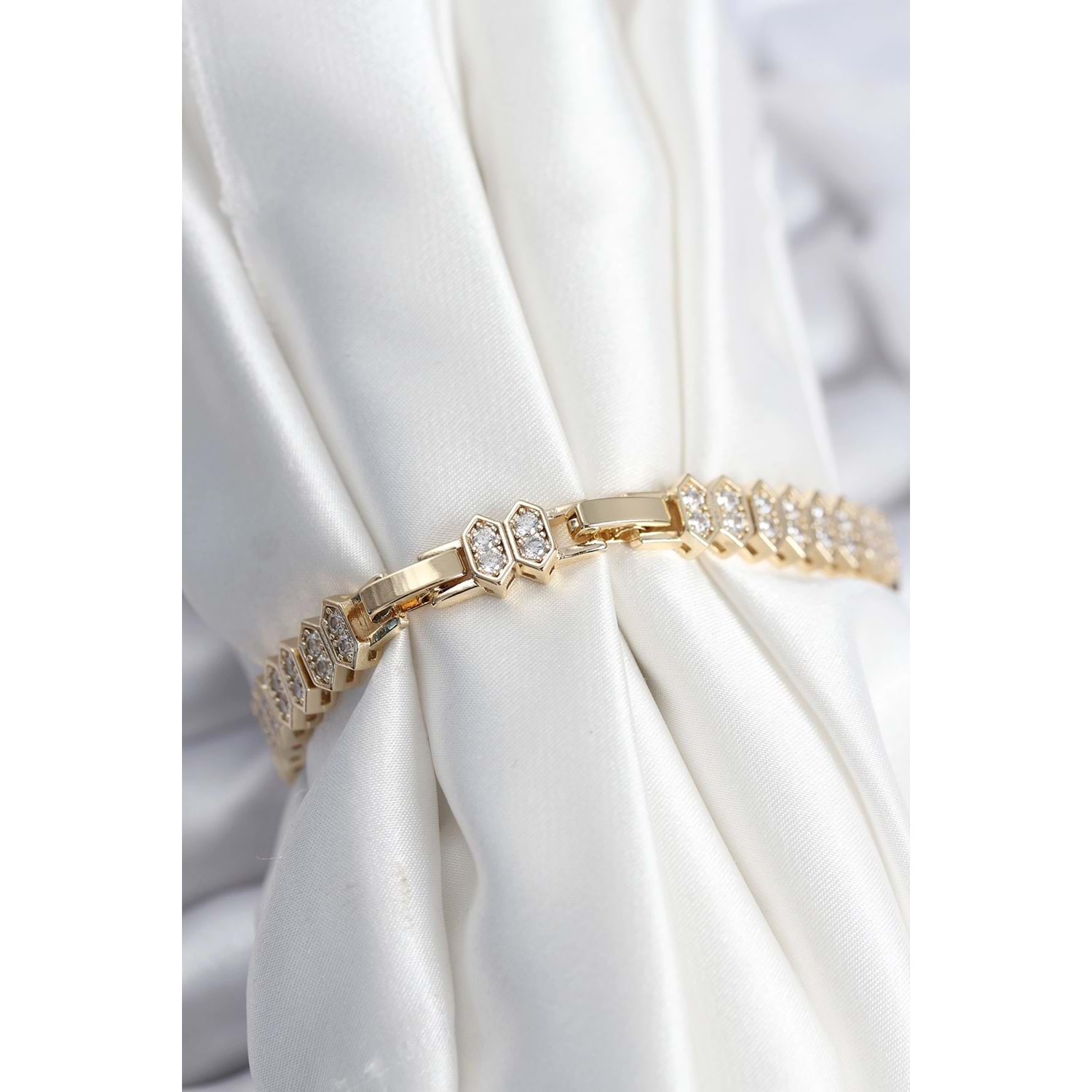 Pirinç VIP Seri Gold Renk Zirkon Taşlı Kadın Bileklik