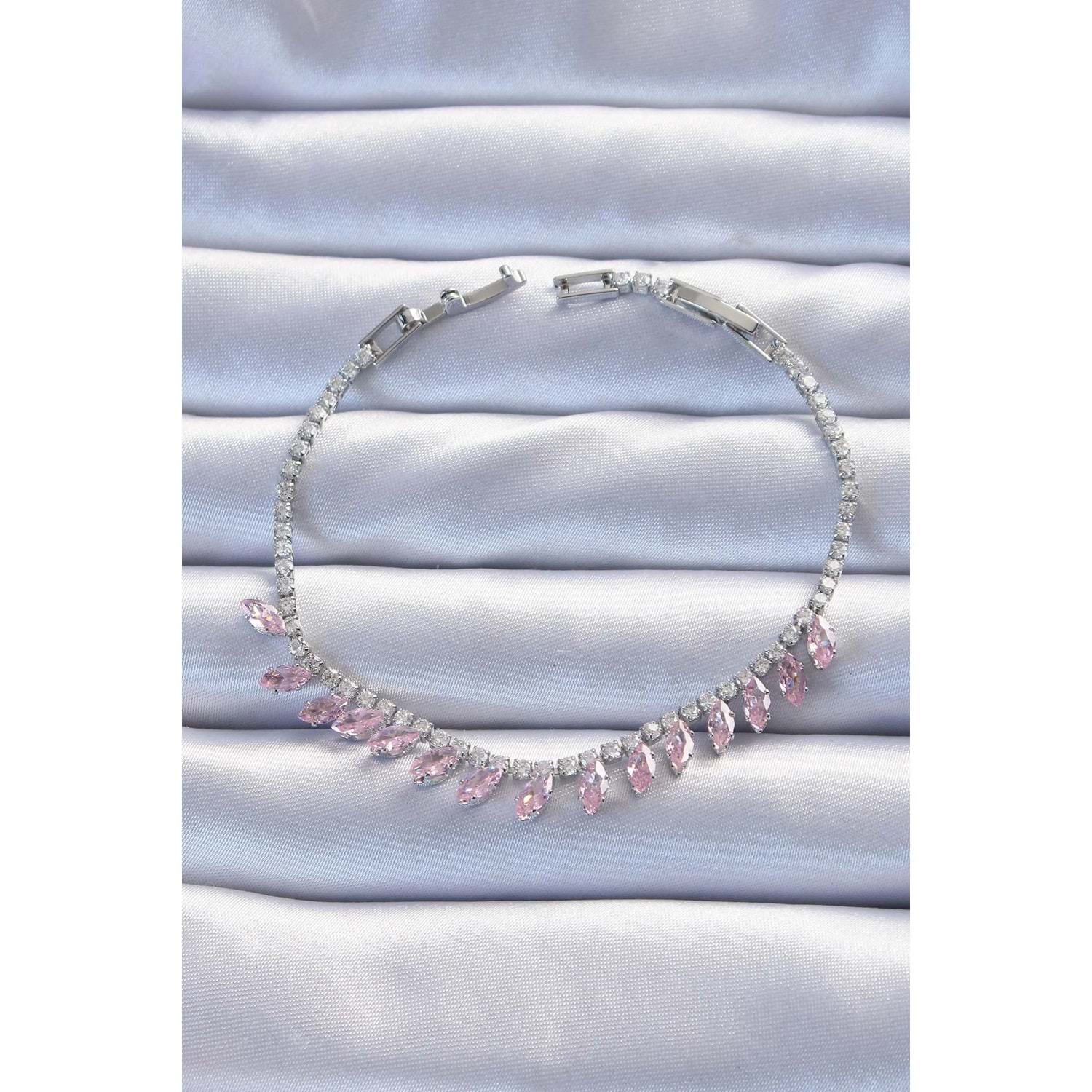Pirinç Vip Seri Gümüş Renk Pembe Zirkon Taşlı Bileklik