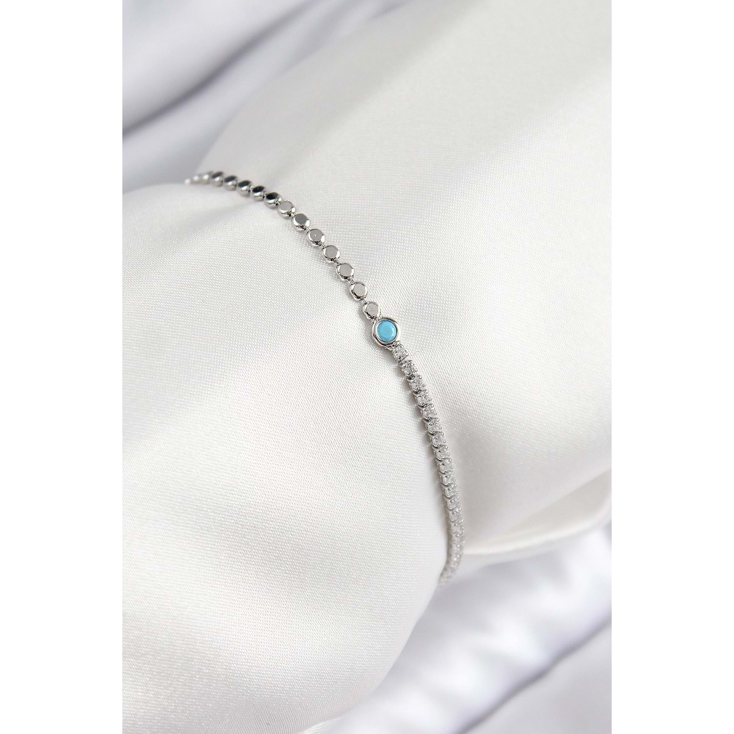 Pirinç Zirkon Taşlı Boncuk Model Ezme Zincir Gümüş Renk Kadın Bileklik