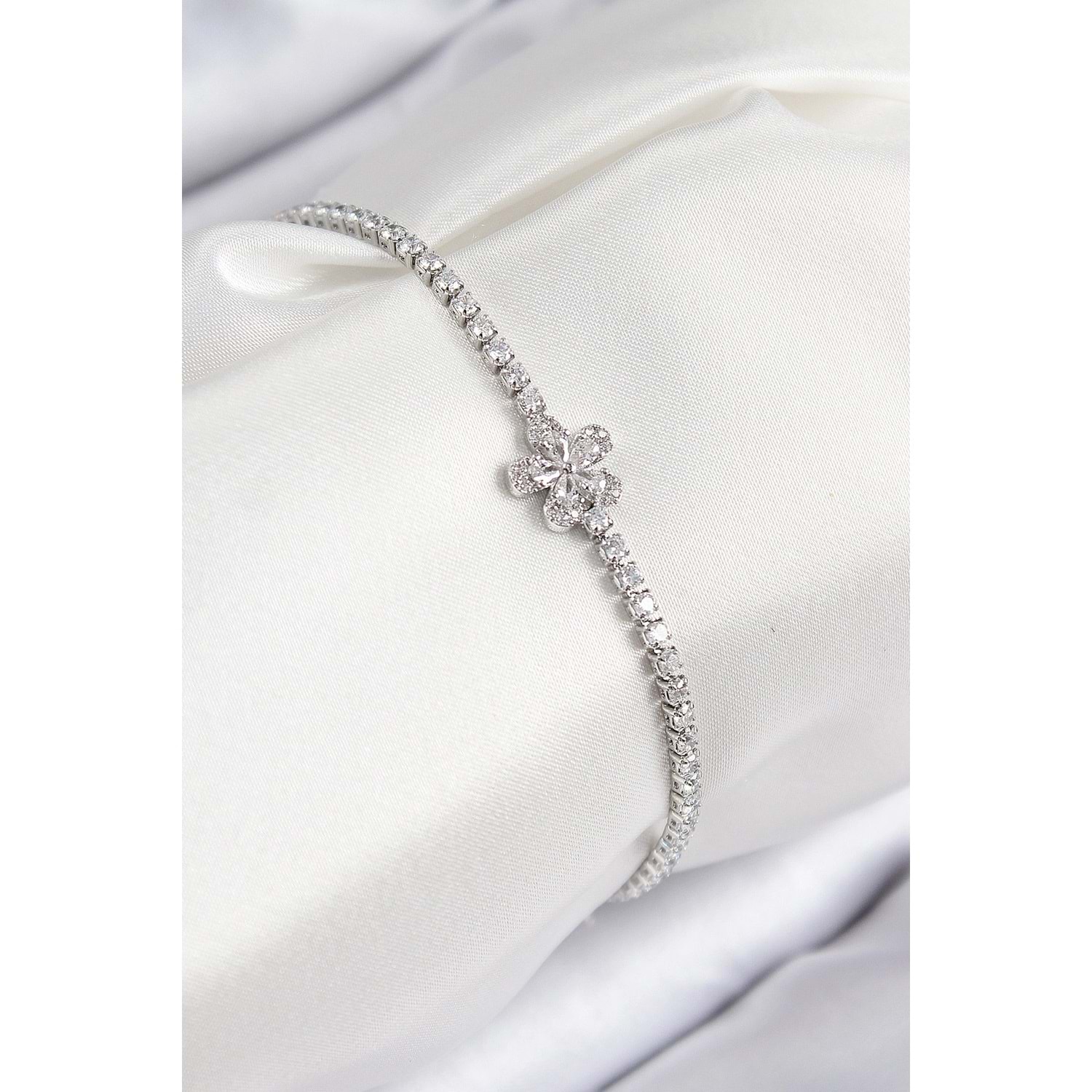 Pirinç Zirkon Taşlı Çiçek Model Gümüş Renk Kadın Bileklik