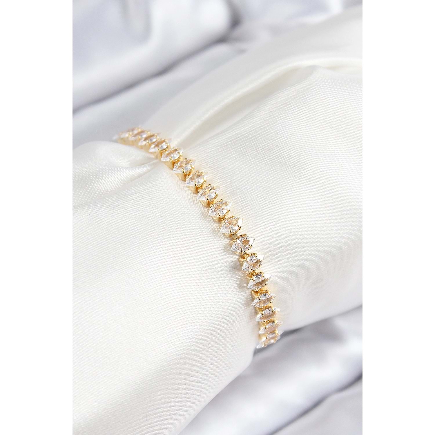 Pirinç Zirkon Taşlı Damla Model Gold Renk Asansörlü Kadın Bileklik