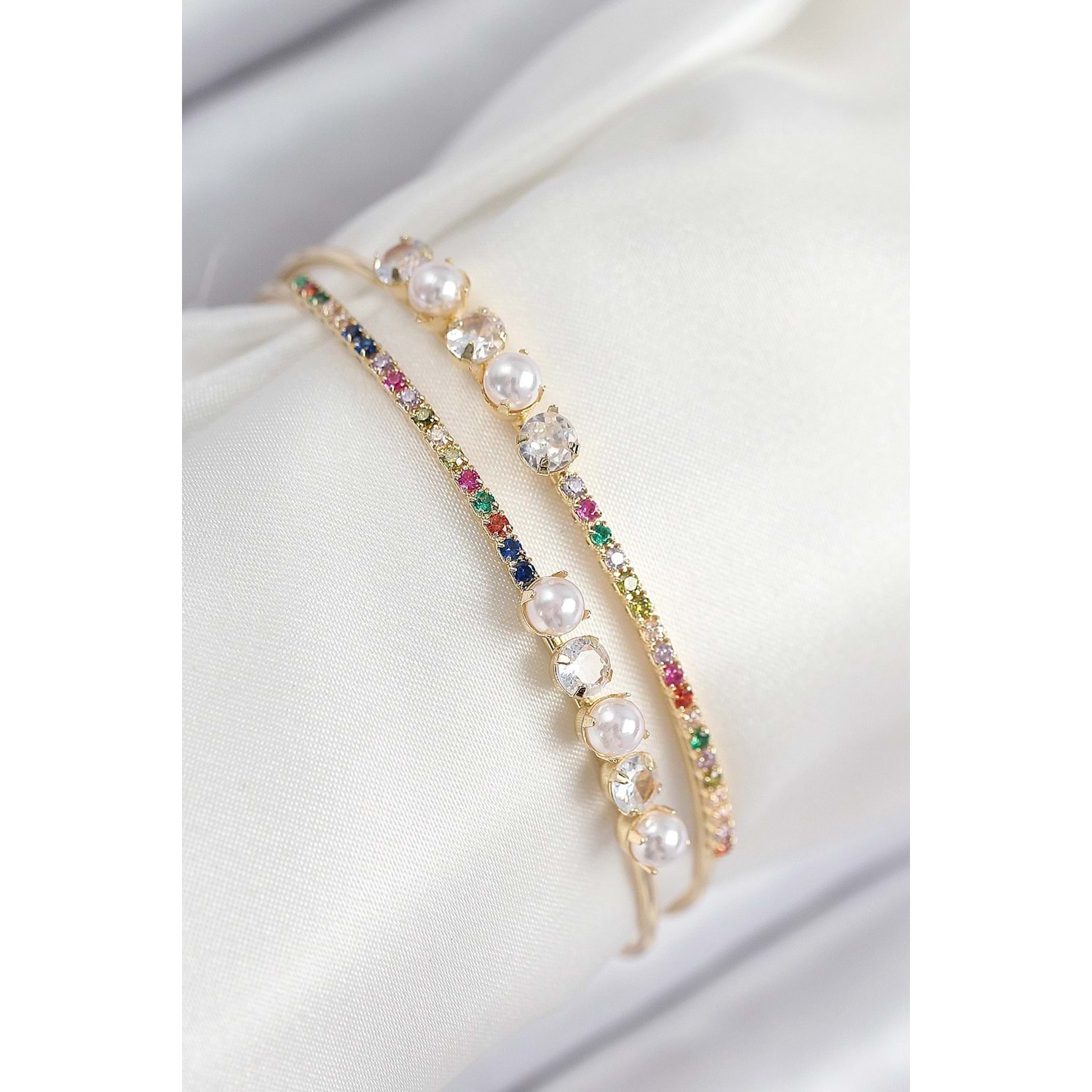 Pirinç Zirkon Taşlı İnci Model Gold Renk Kadın Bileklik