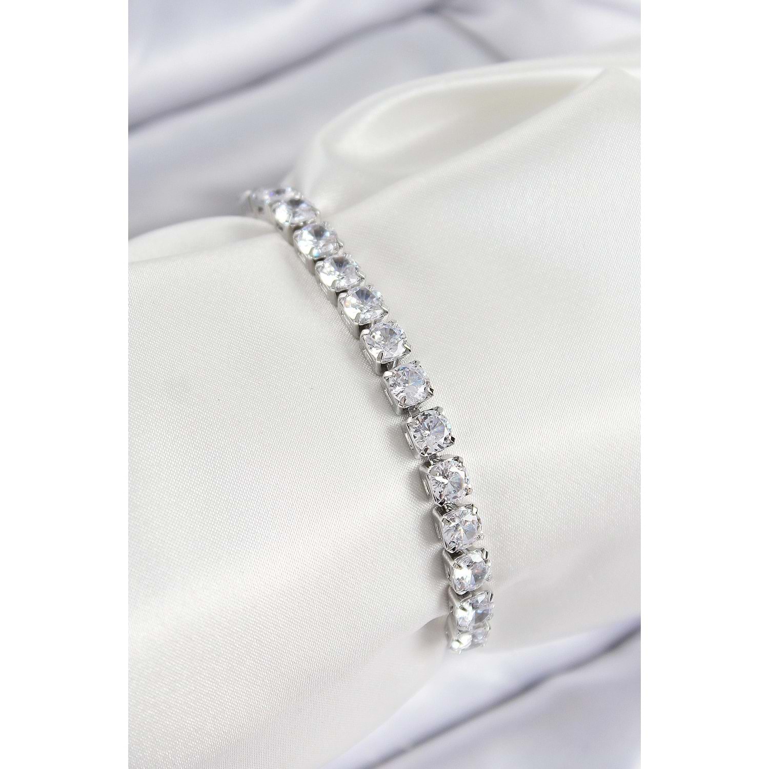 Pirinç Zirkon Taşlı Kare Model Gümüş Renk Asansörlü Kadın Bileklik