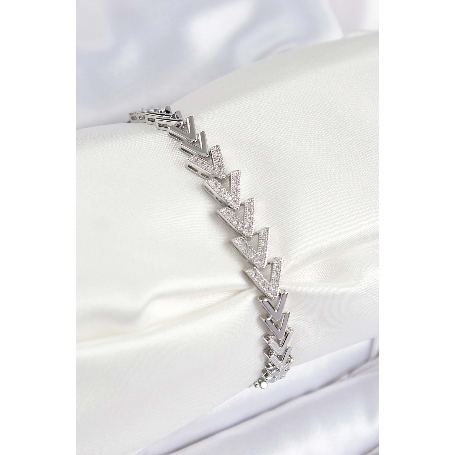 Pirinç Zirkon Taşlı Sıralı Ok Model Gümüş Renk Kadın Bileklik