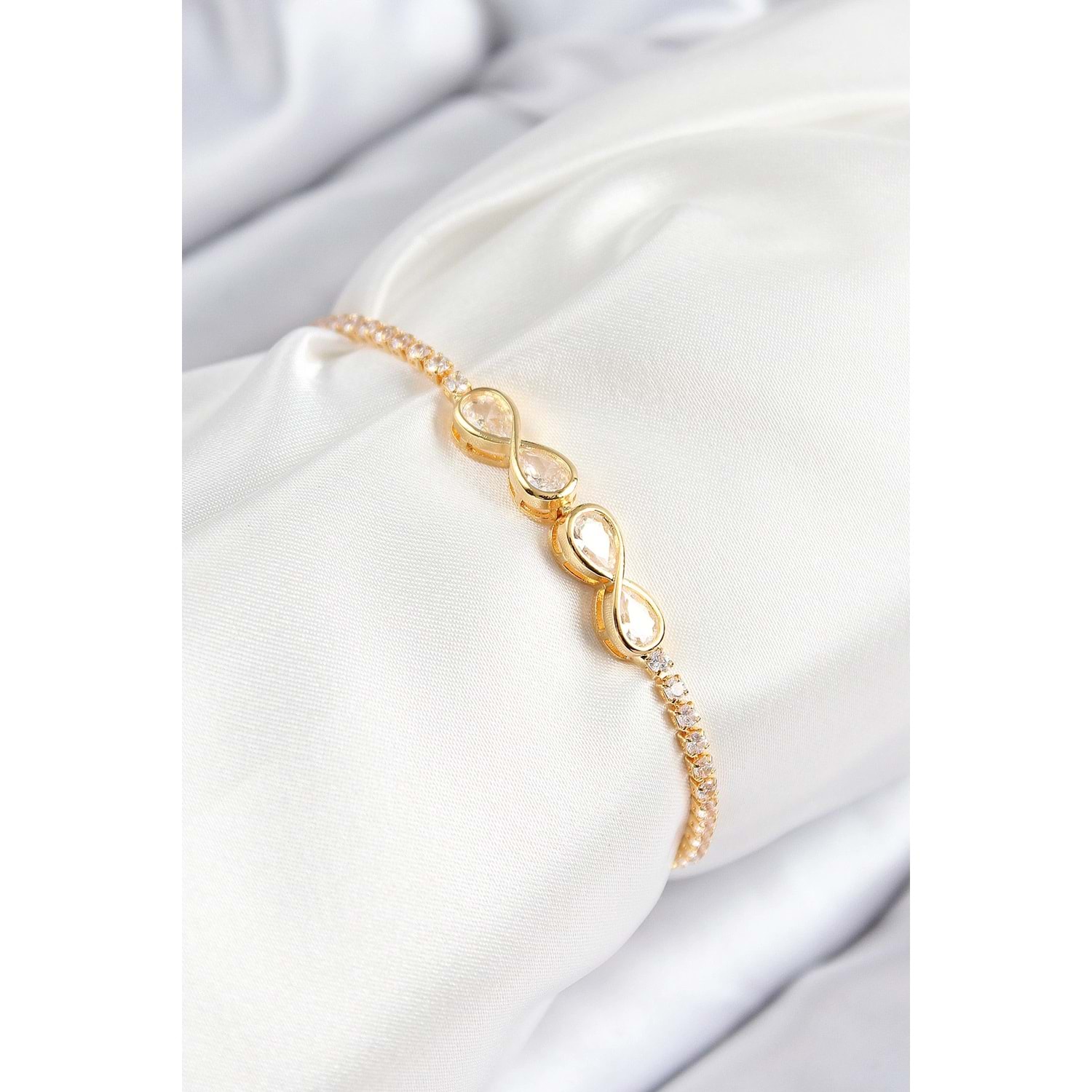 Pirinç Zirkon Taşlı Sonsuzluk Model Gold Renk Asansörlü Kadın Bileklik