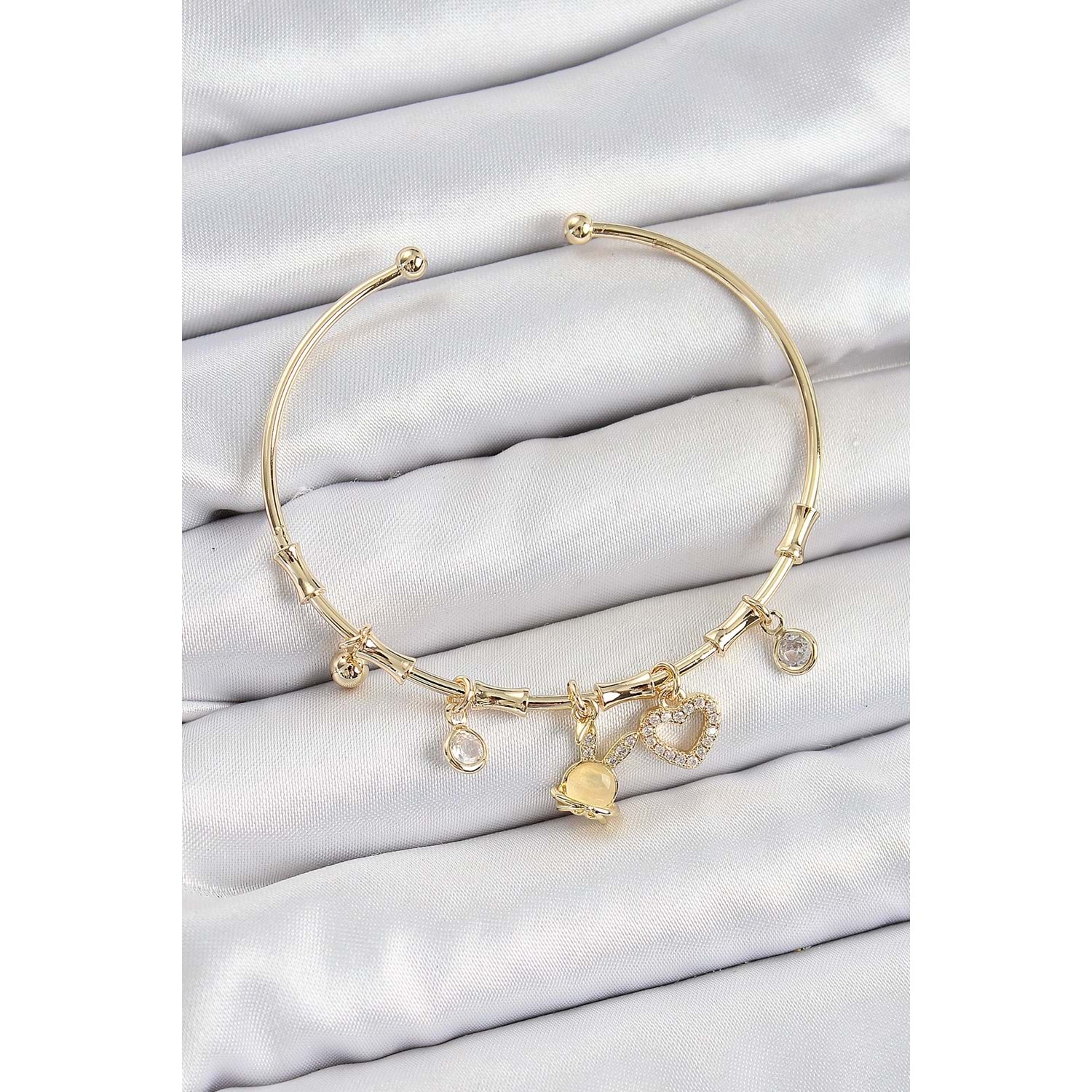 Pirinç Zirkon Taşlı Tavşan Ve Kalp Model Gold Renk Charm Bileklik