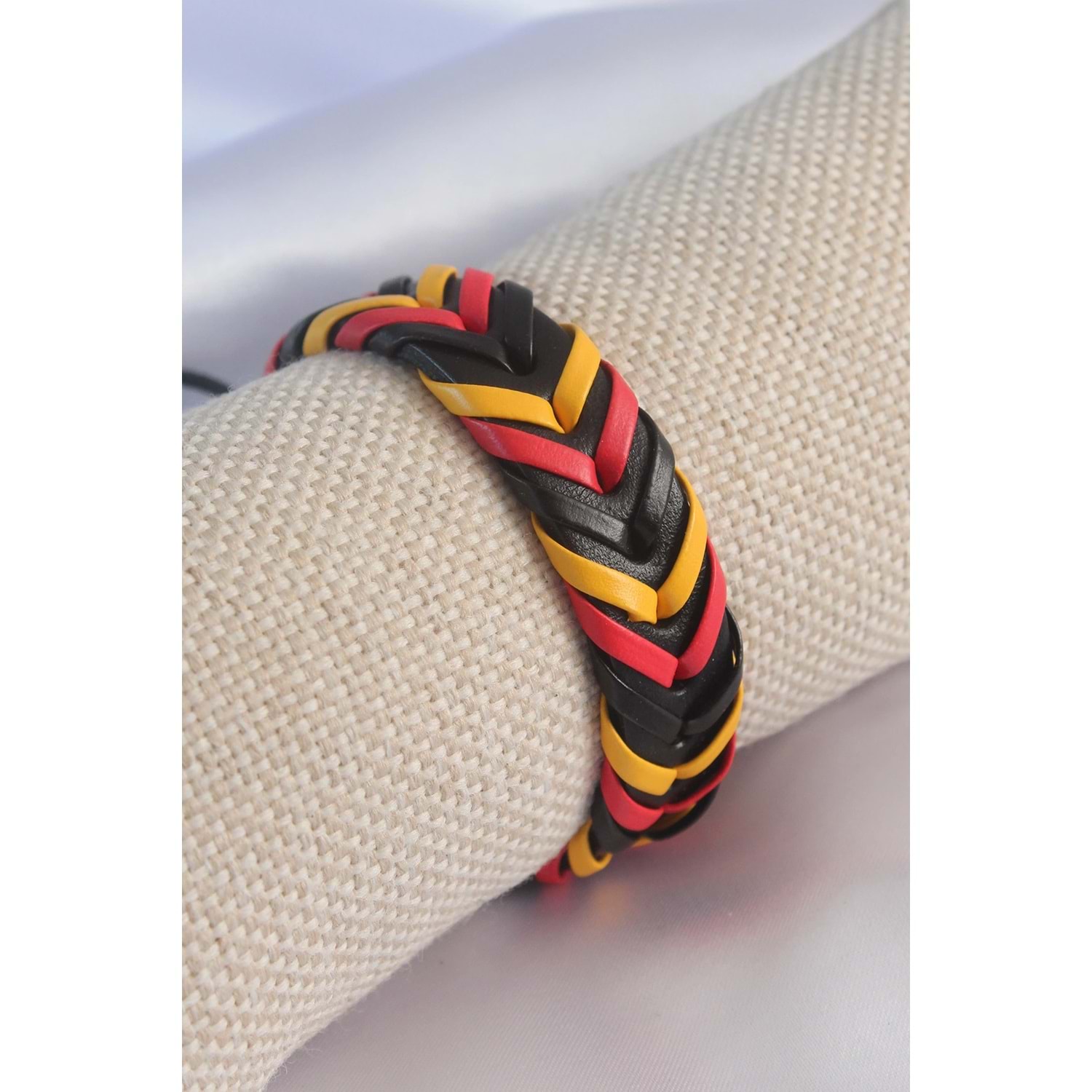 Sarı Kırmızı Siyah Renk Deri İpli Erkek Bileklik