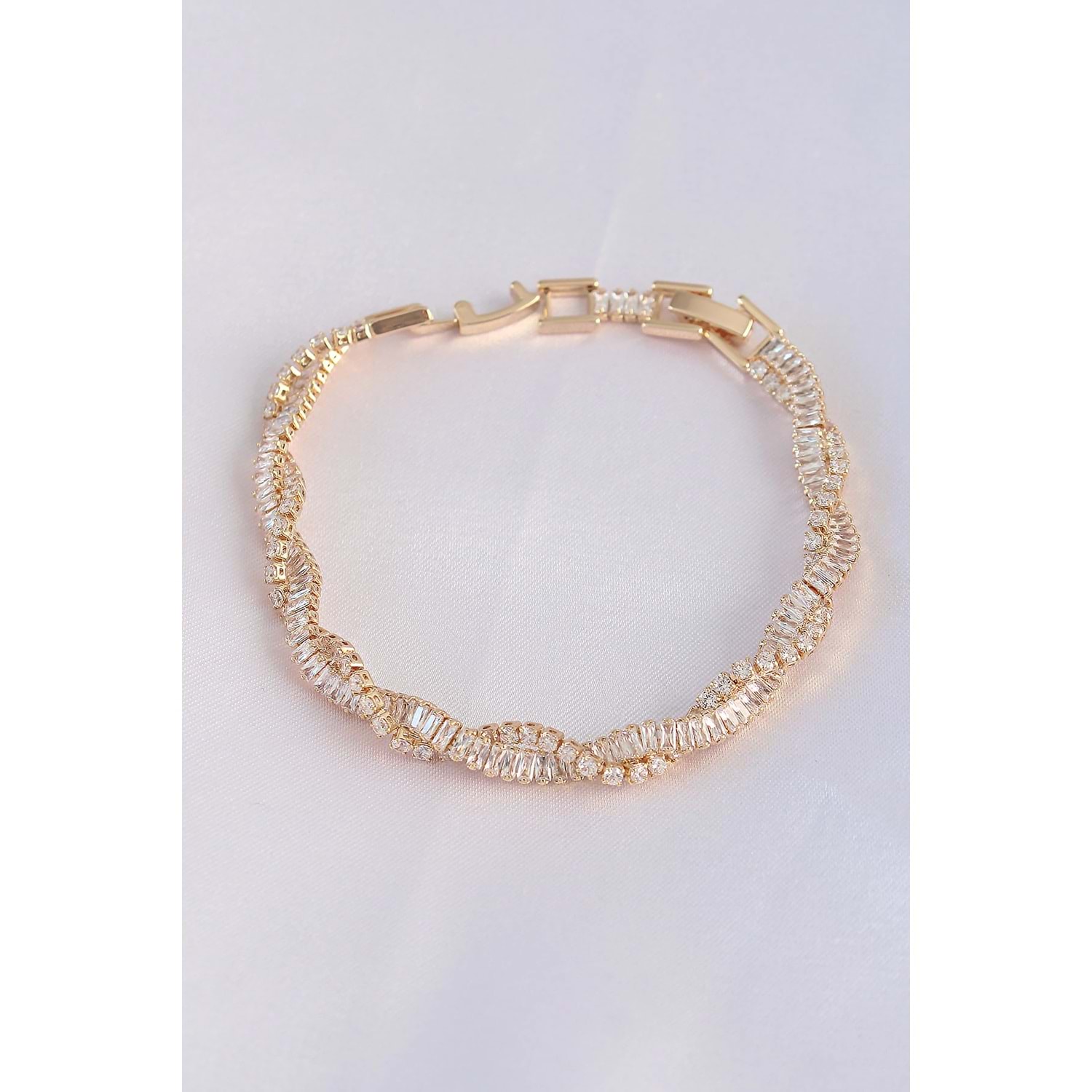 Vip Seri Pirinç Zirkon Taşlı Gold Renk Sarmal Model Bileklik