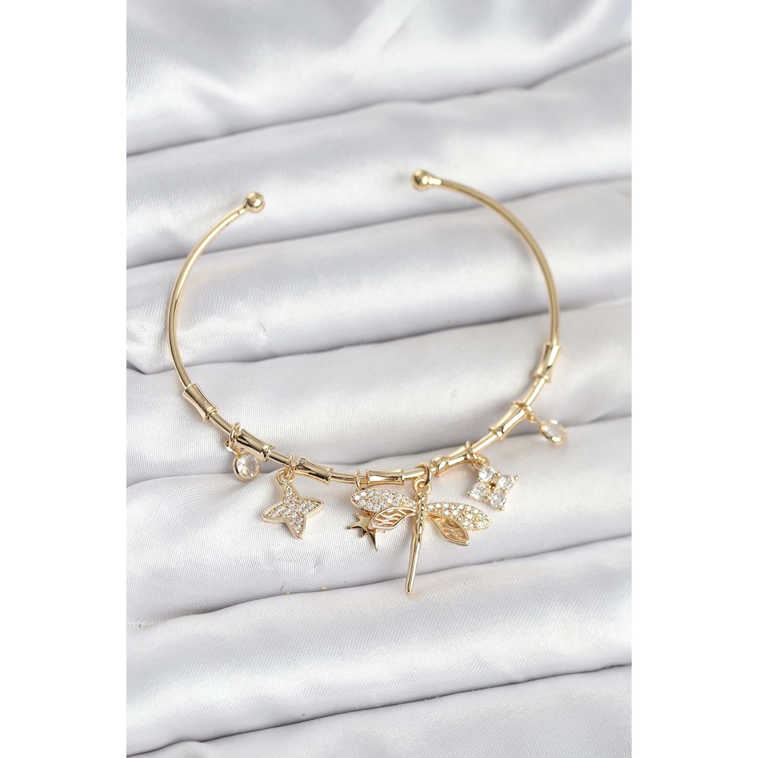 Yusufçuk Charmlı Gold Renk Pirinç Kadın Bileklik
