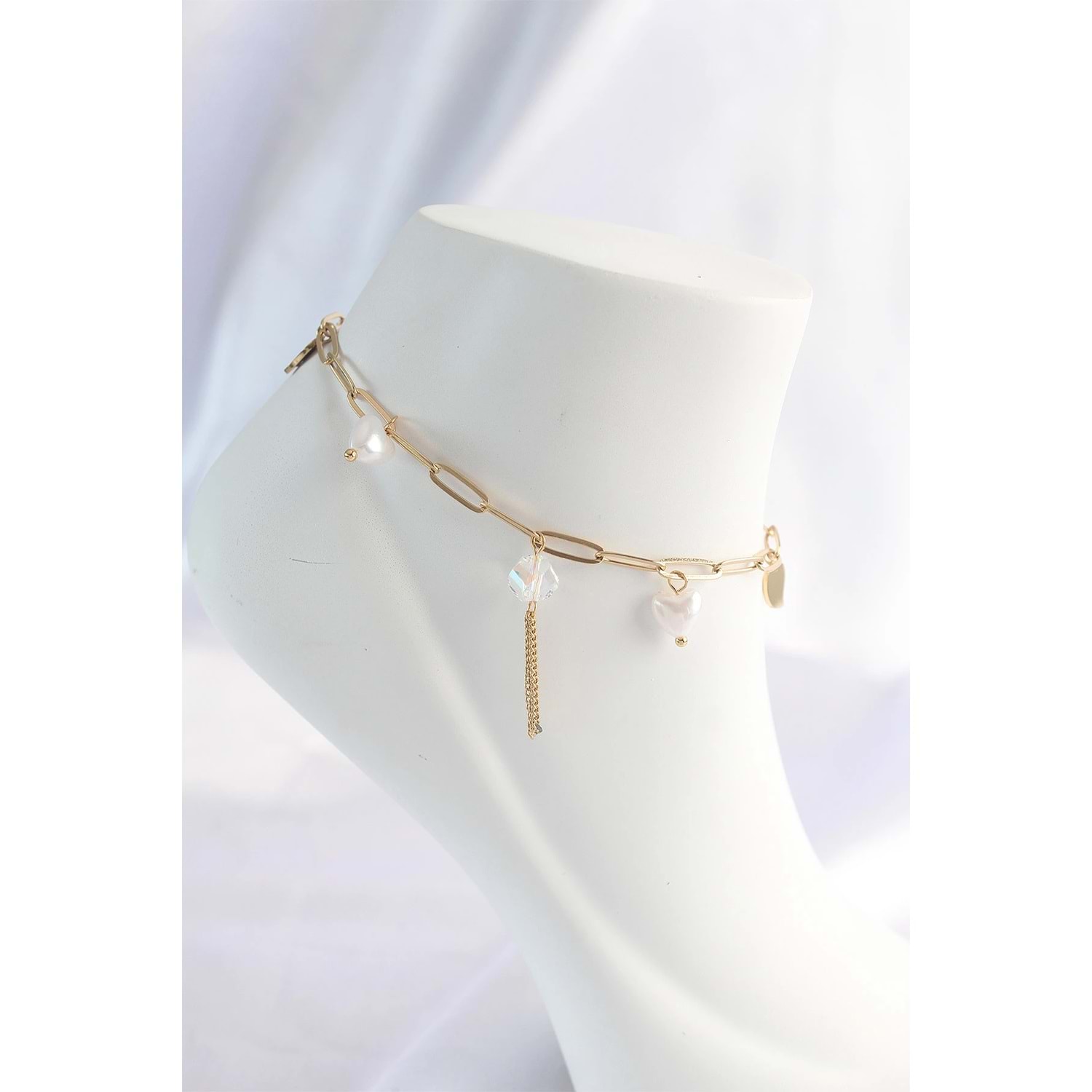 316L Çelik Gold Renk Kalp Detaylı Sallantılı Halhal
