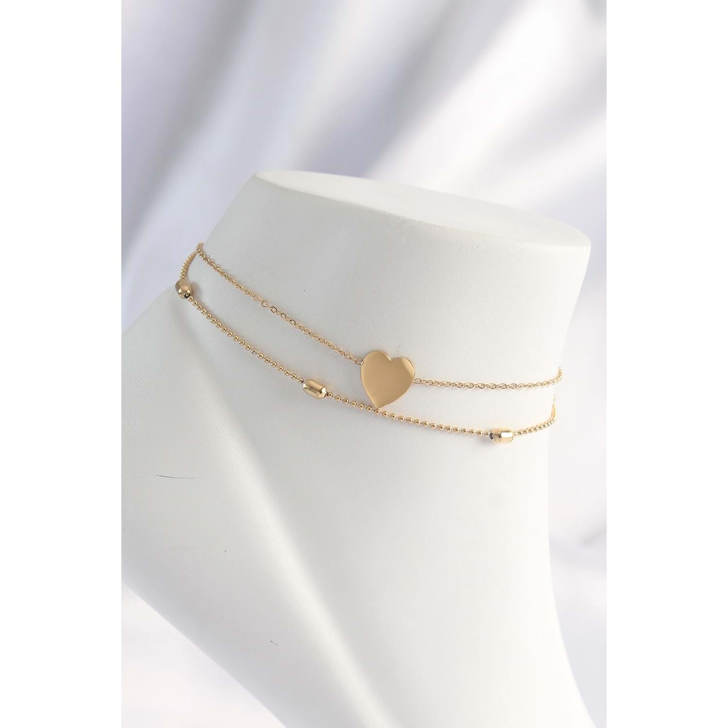 316L Çelik Gold Renk Kalp Tasarımlı 2li Halhal