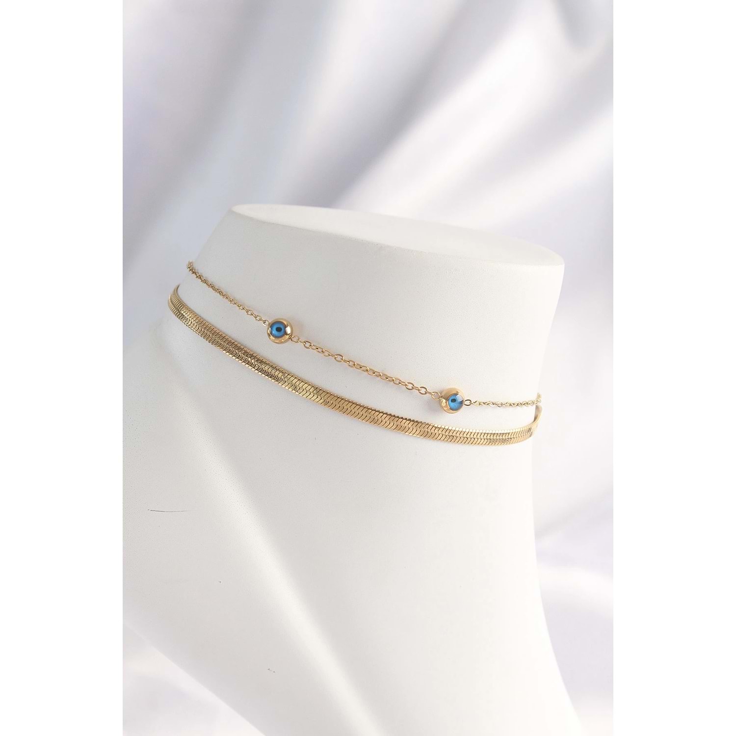 316L Çelik Gold Renk Nazar Boncuk Tasarımlı 2li Halhal