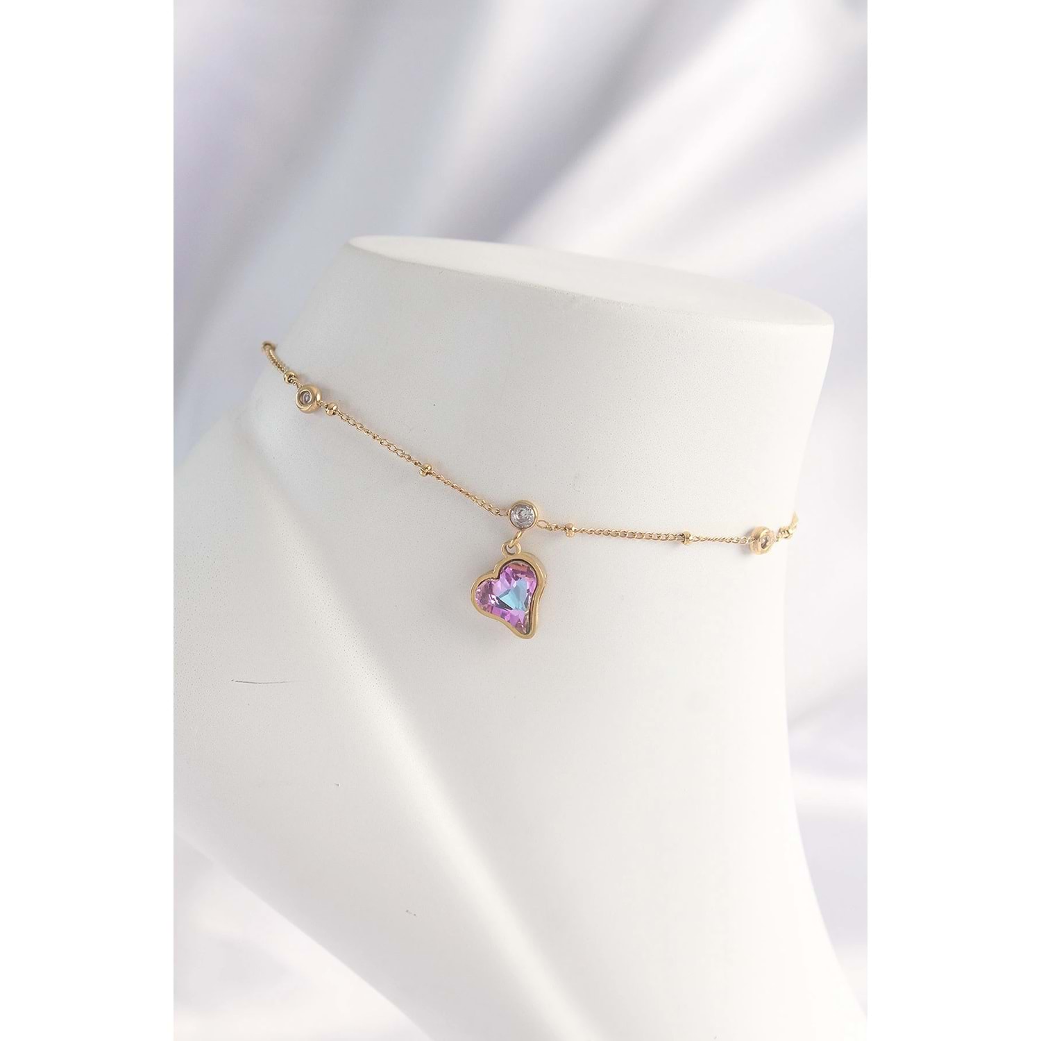 316L Çelik Gold Renk Renkli Zirkon Taşlı Kalp Halhal