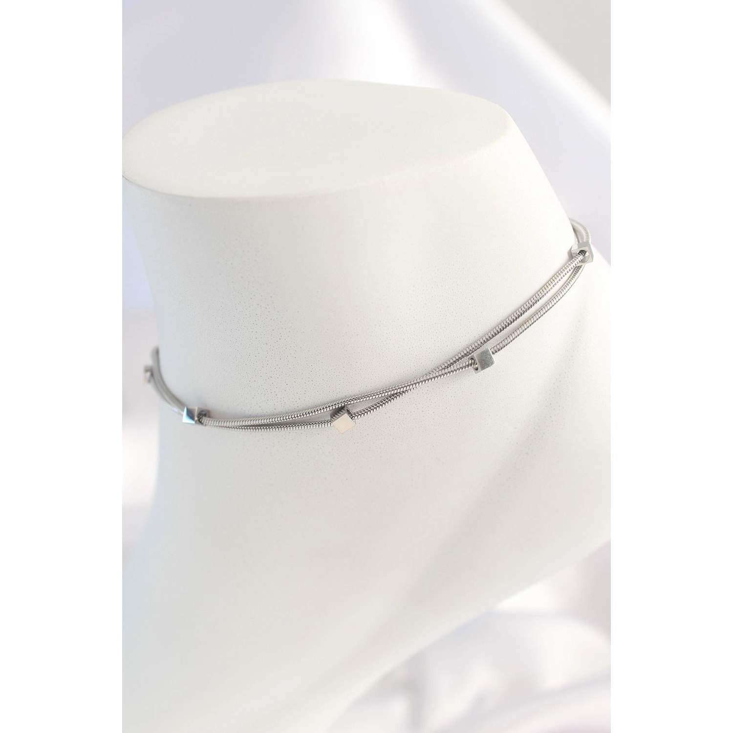 316L Çelik Gümüş Renk Minimal Kare Model Kadın Halhal