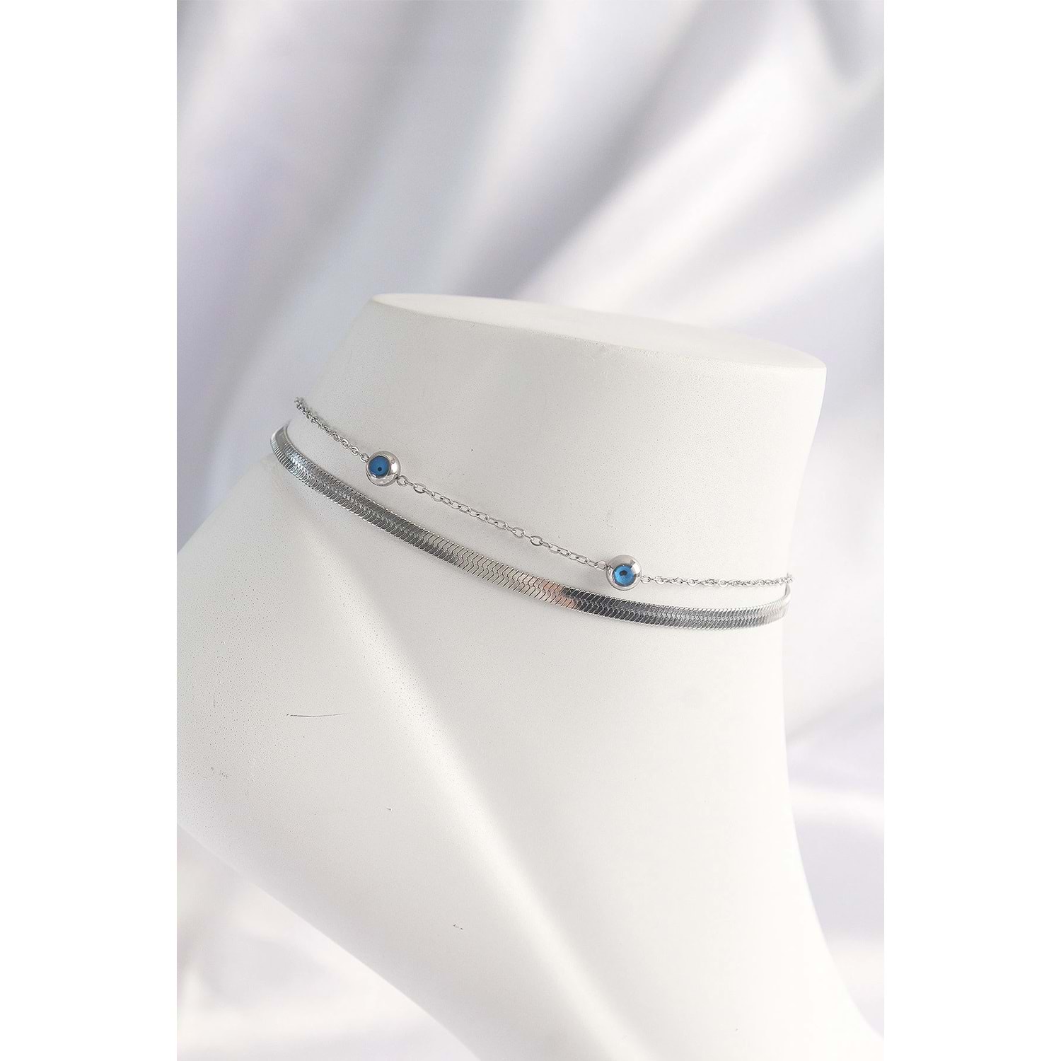 316L Çelik Gümüş Renk Nazar Boncuk Tasarımlı 2li Halhal