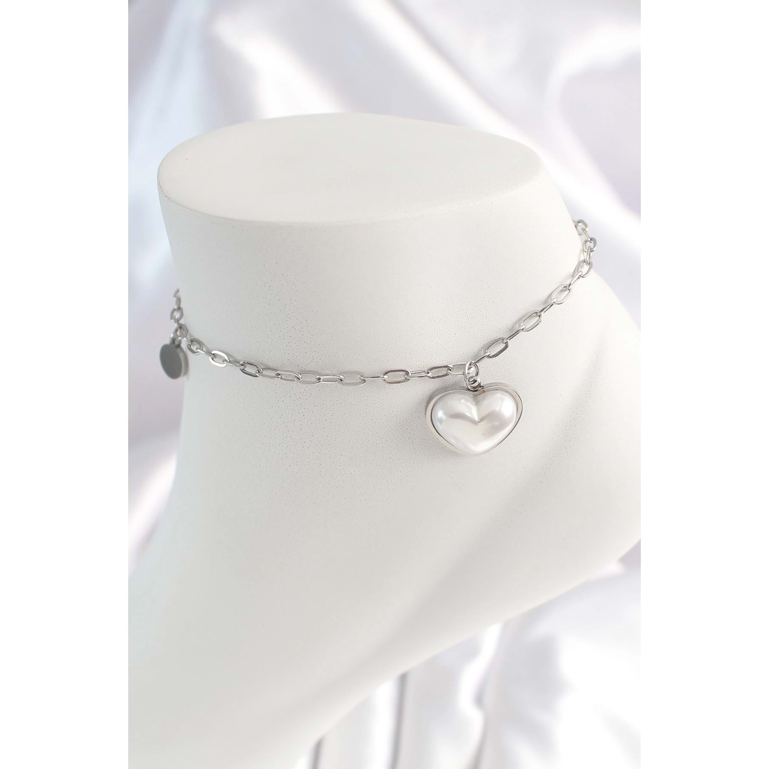 316L Çelik Gümüş Renk Zincir Model 3D Kalp Beyaz Kalp Figür Kadın HalHal